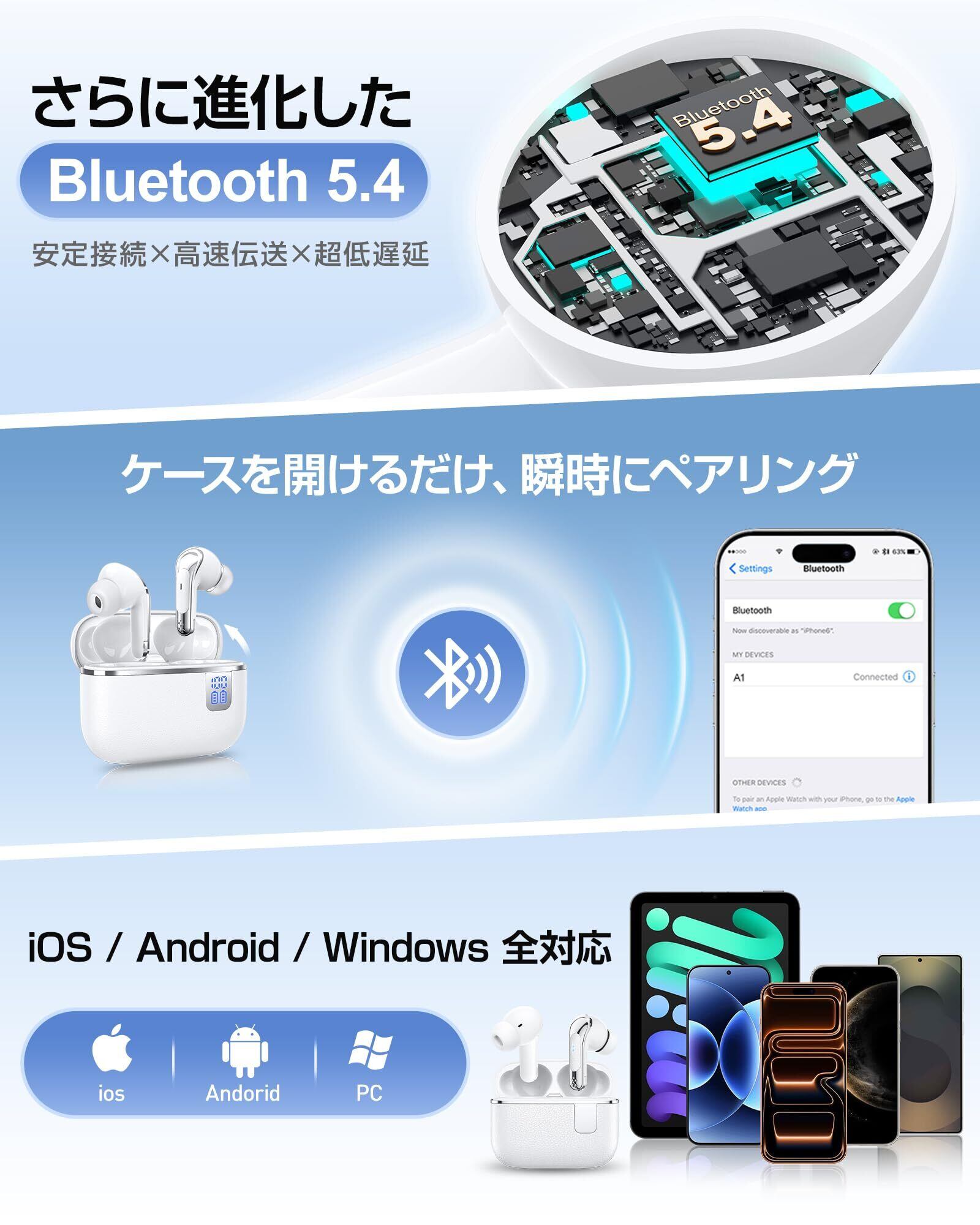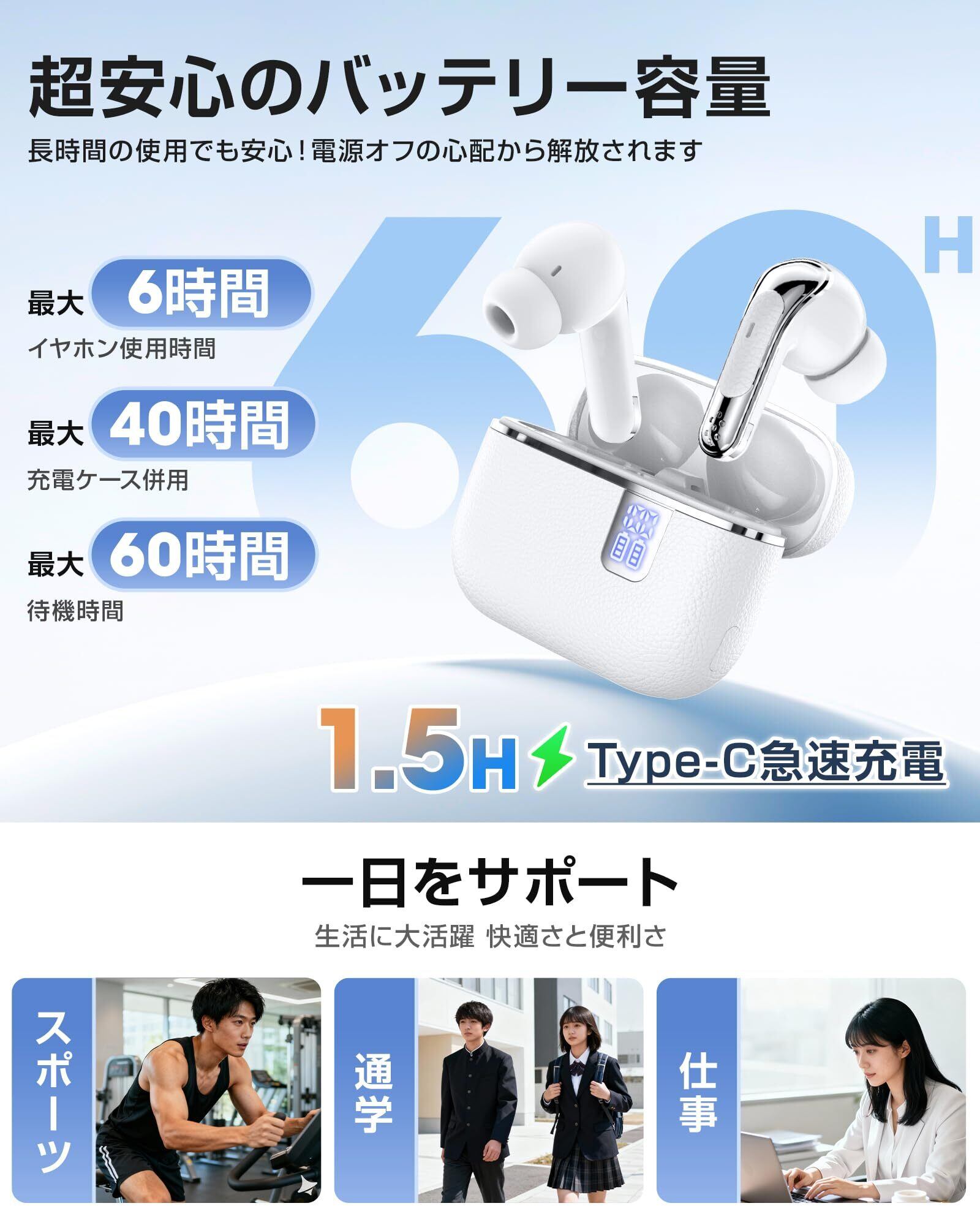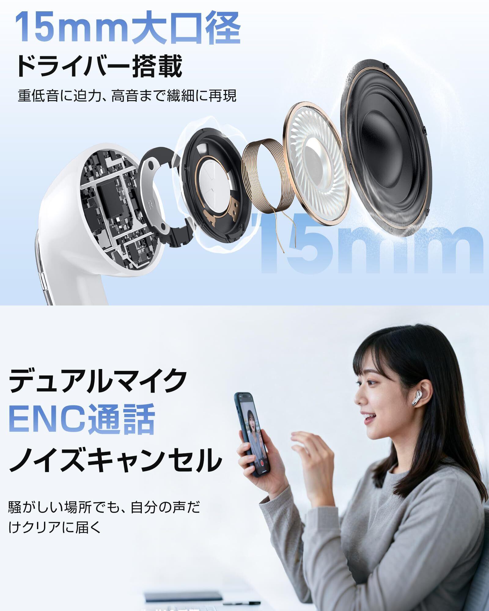 ワイヤレスイヤホン【音質強化モデル】 イヤホン bluetooth 5.4 ENC通話ノイズキャンセリング 小型・軽量 低遅延 60時間連続再生 IPX7防水 自動ペアリング Type-C充電 片耳・両耳対応 iPhone/Android対応 WEB会議 通勤・通学・音楽・スポーツ・ゲーム | kki