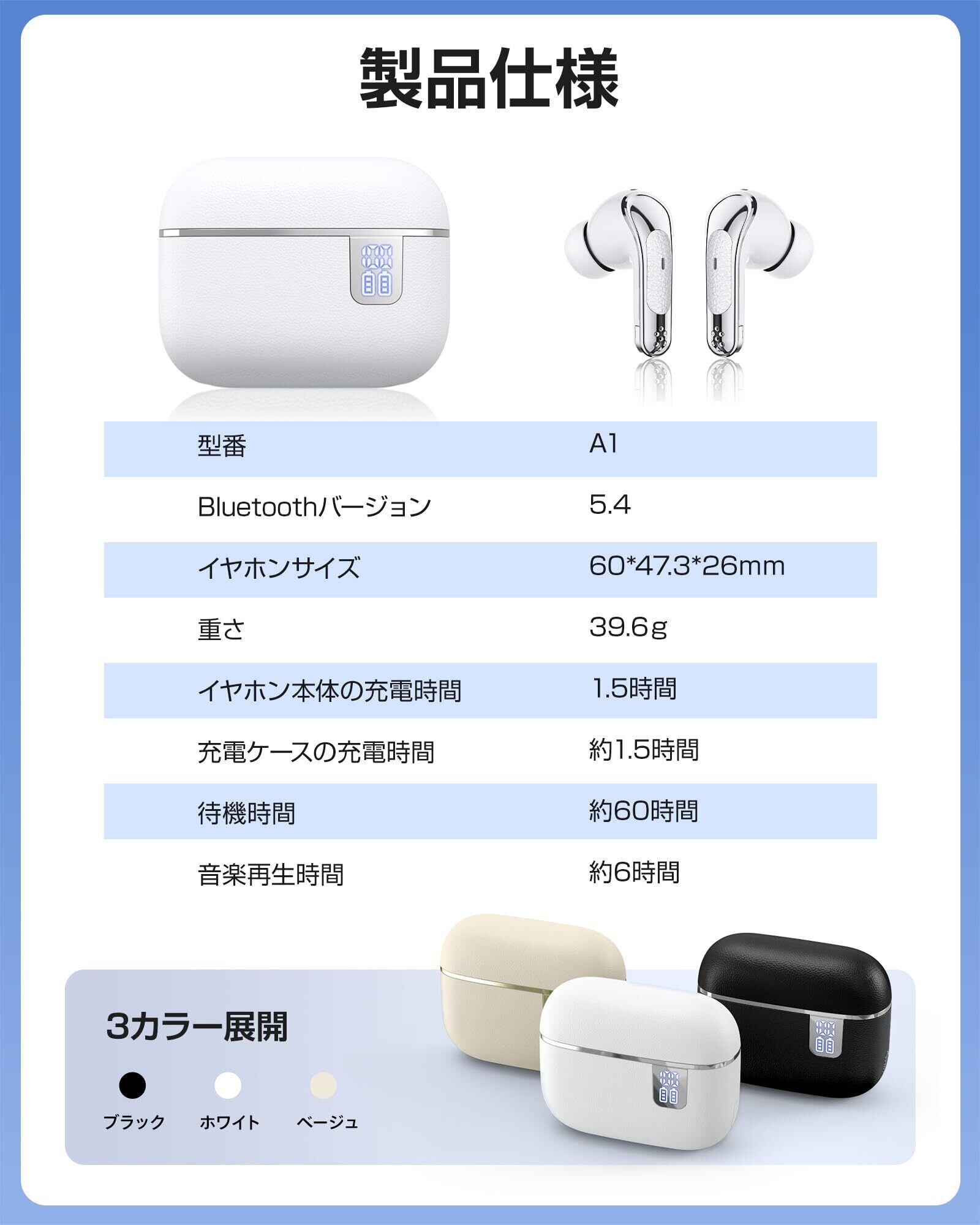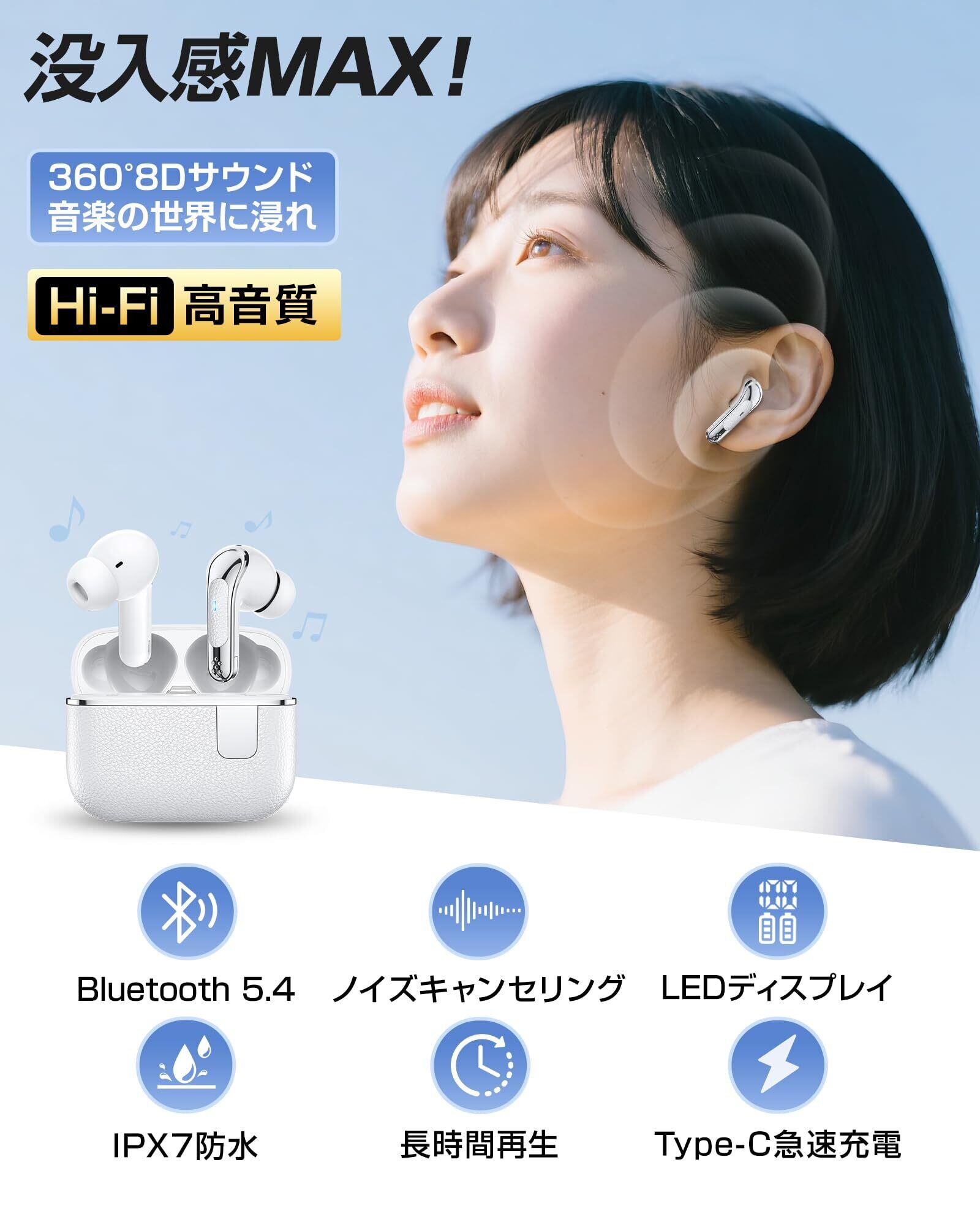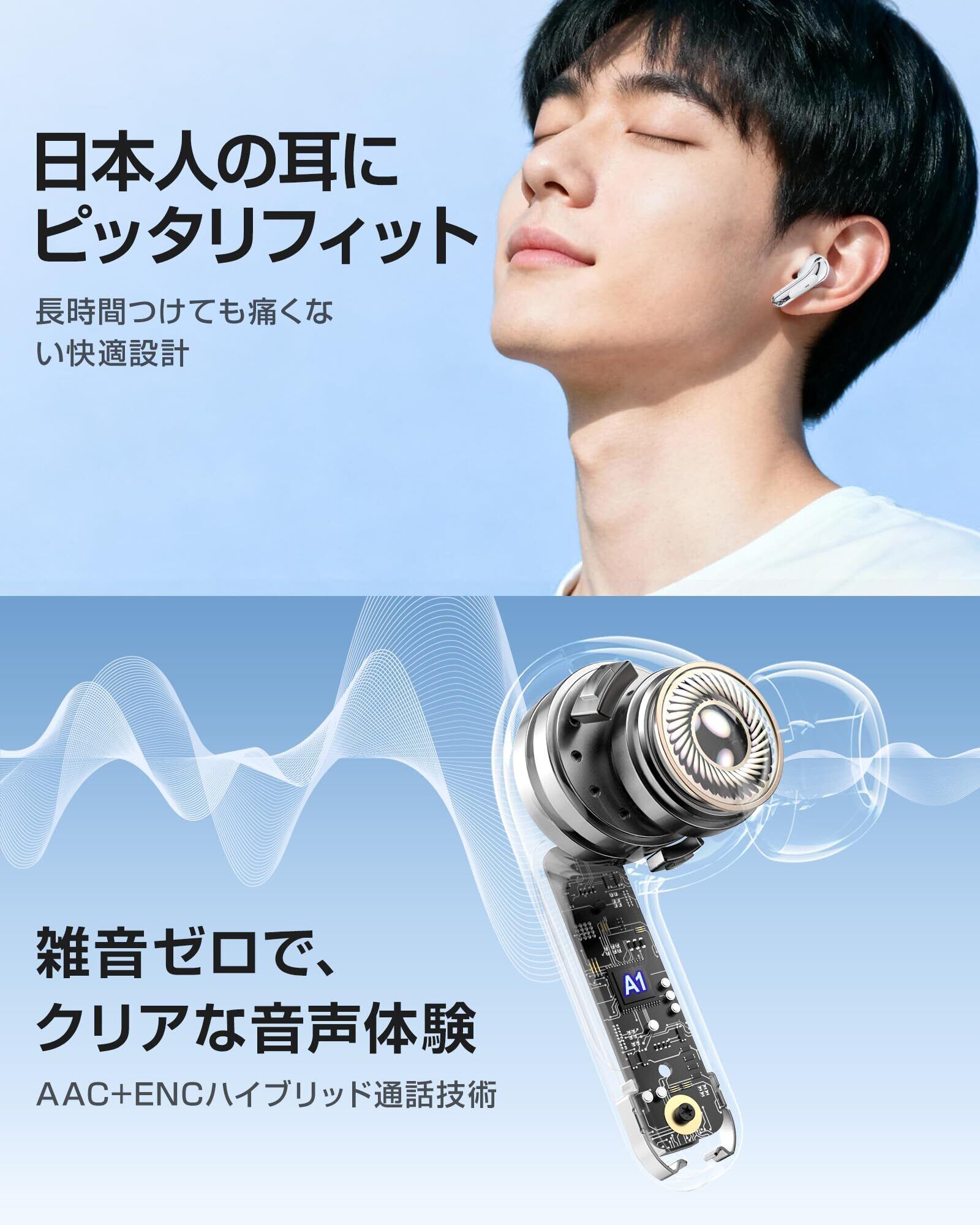 ワイヤレスイヤホン【音質強化モデル】 イヤホン bluetooth 5.4 ENC通話ノイズキャンセリング 小型・軽量 低遅延 60時間連続再生 IPX7防水 自動ペアリング Type-C充電 片耳・両耳対応 iPhone/Android対応 WEB会議 通勤・通学・音楽・スポーツ・ゲーム | kki