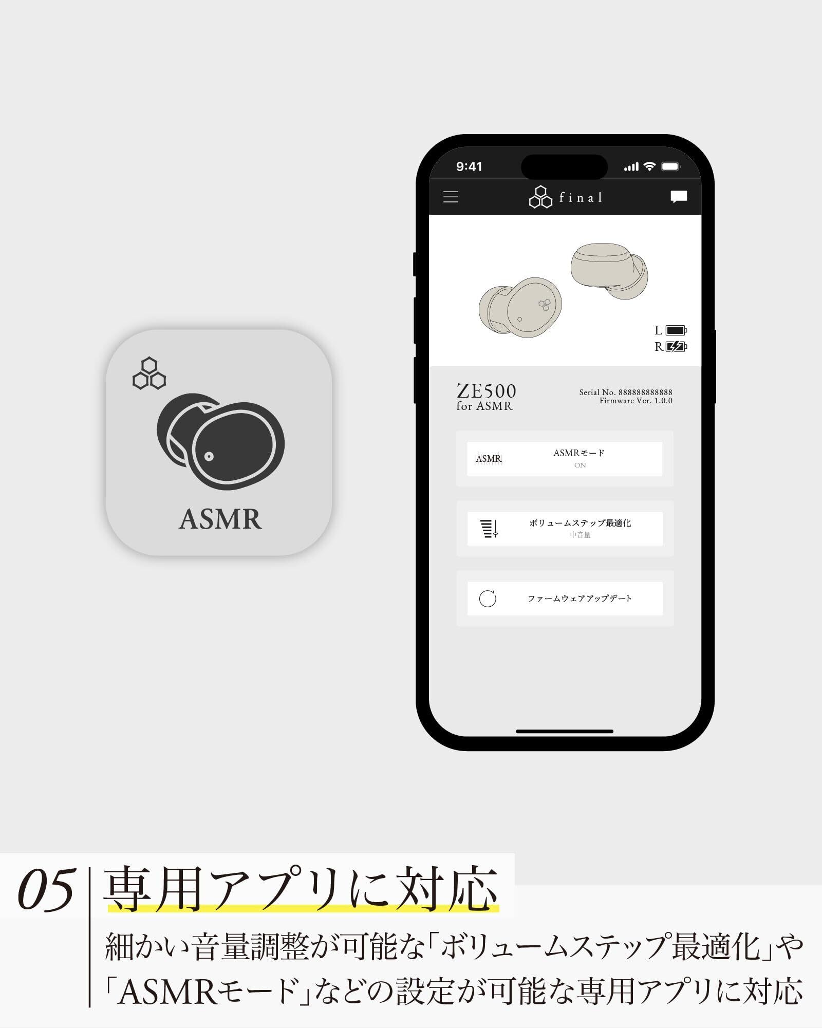 final (ファイナル) ZE500 for ASMR ワイヤレスイヤホン・超小さい・寝ホン推奨 (Dark Gray)