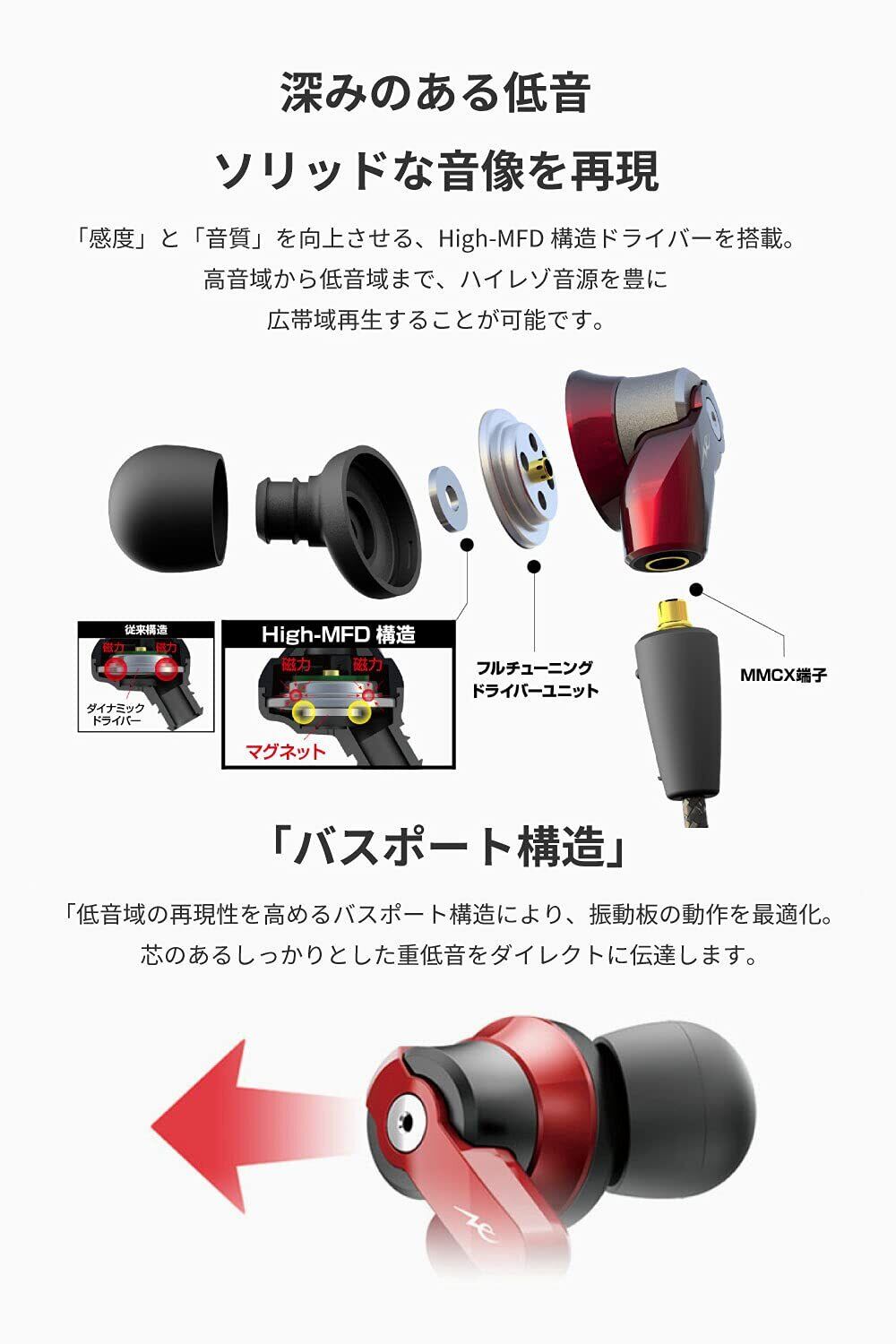 ラディウス radius HP-NHR31 イヤホン : ハイレゾ対応 MMCX リケーブル Ne VOLTシリーズ 重低音モデル HP-NHR31R (1.単品, レッド)