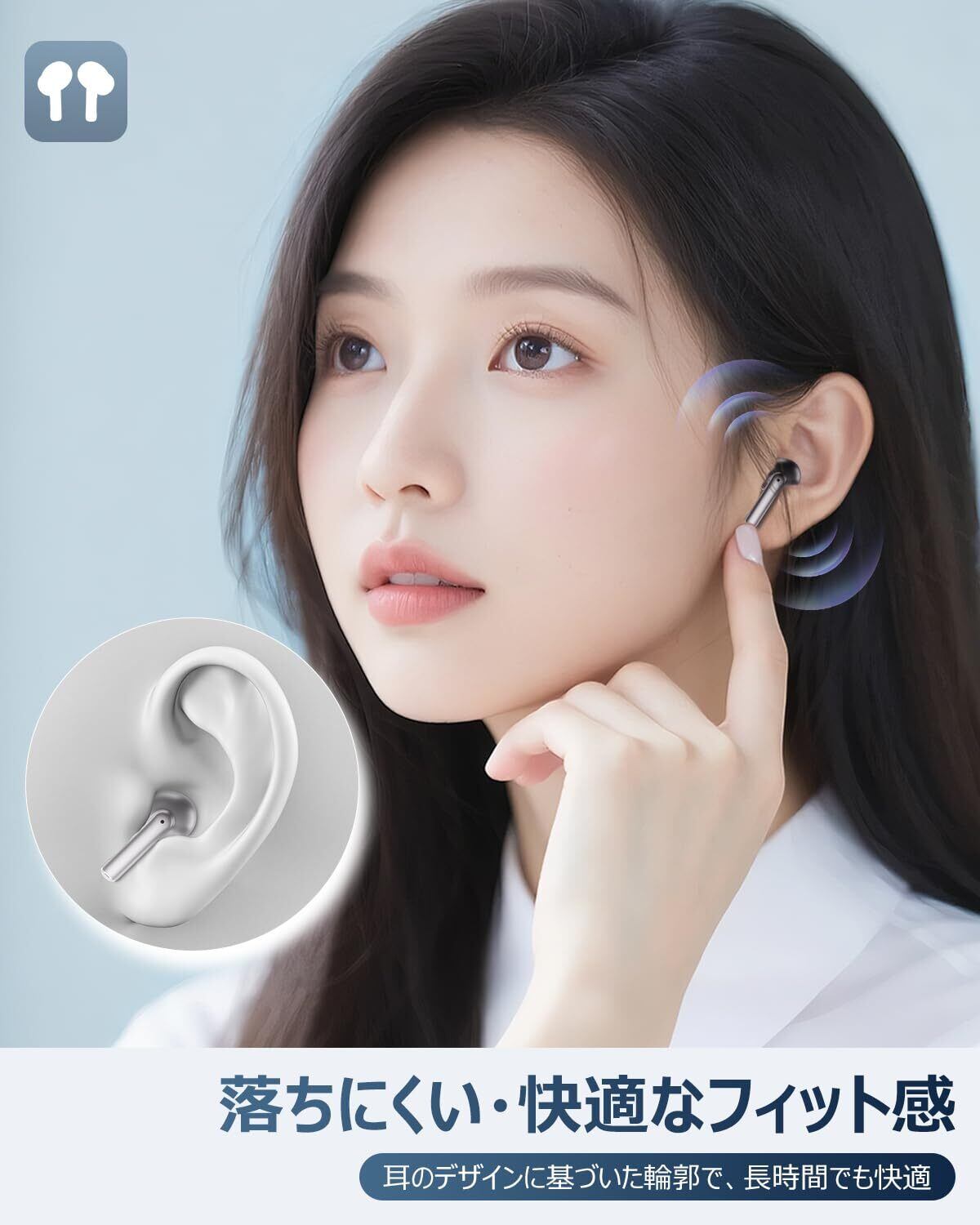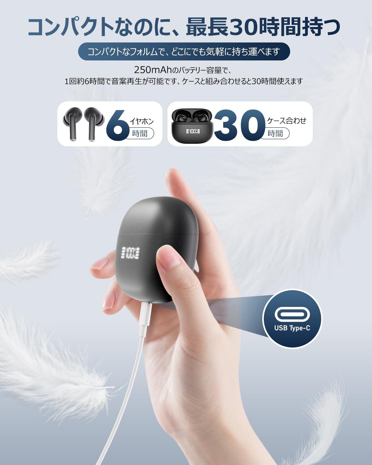 ワイヤレスイヤホン 【2025完全 Bluetooth 6.0 & Hi-Fi級 イヤホン bluetooth イヤフォン 最大30時間再生 ENCダブルマイク通話ノイズキャンセリング 自動ペアリング 40ms低遅延モード IPX4防水/コンパクト/Type-C急速充電【通勤/通学/散歩/スポーツ/ゲーム/テレワーク/電話対応】 | kki