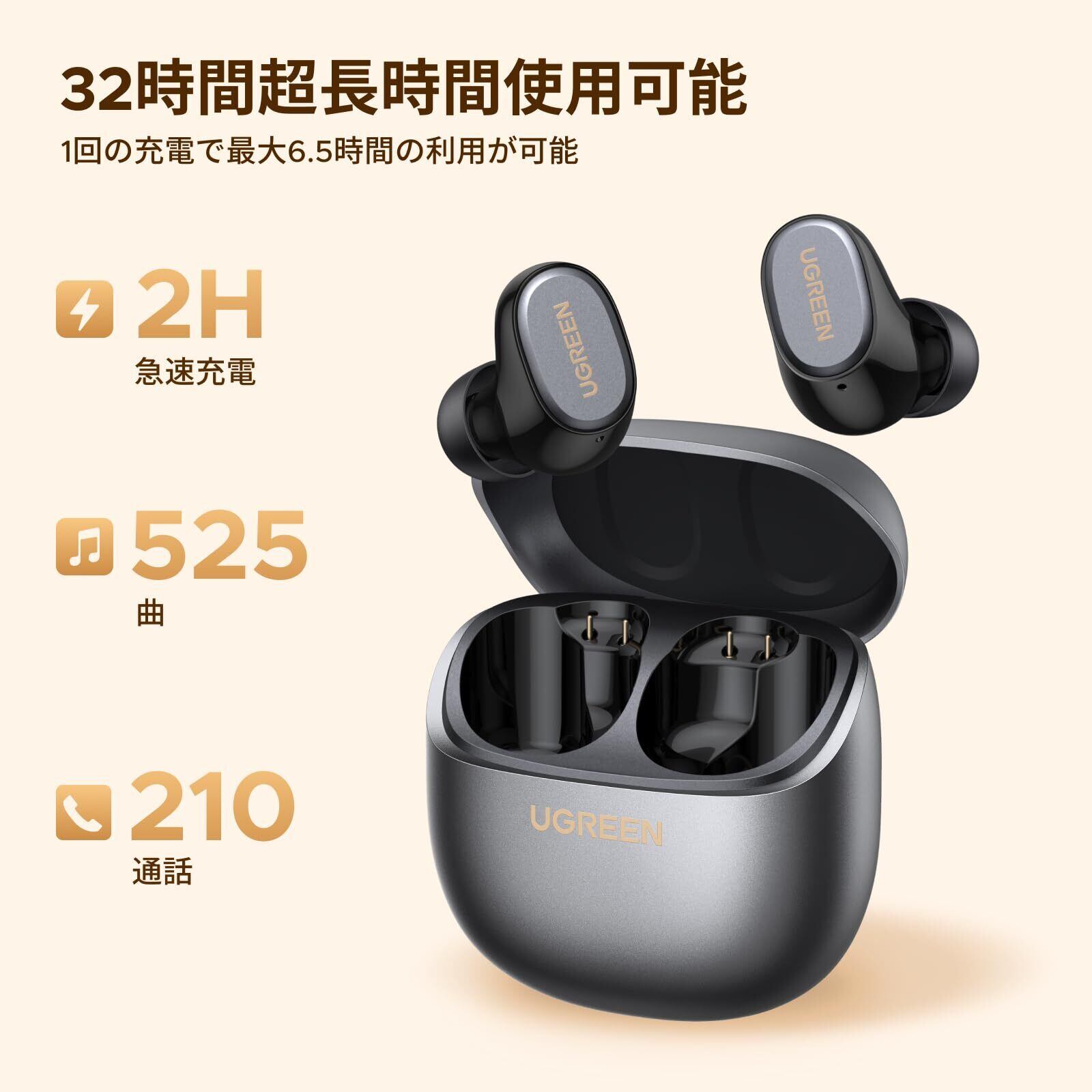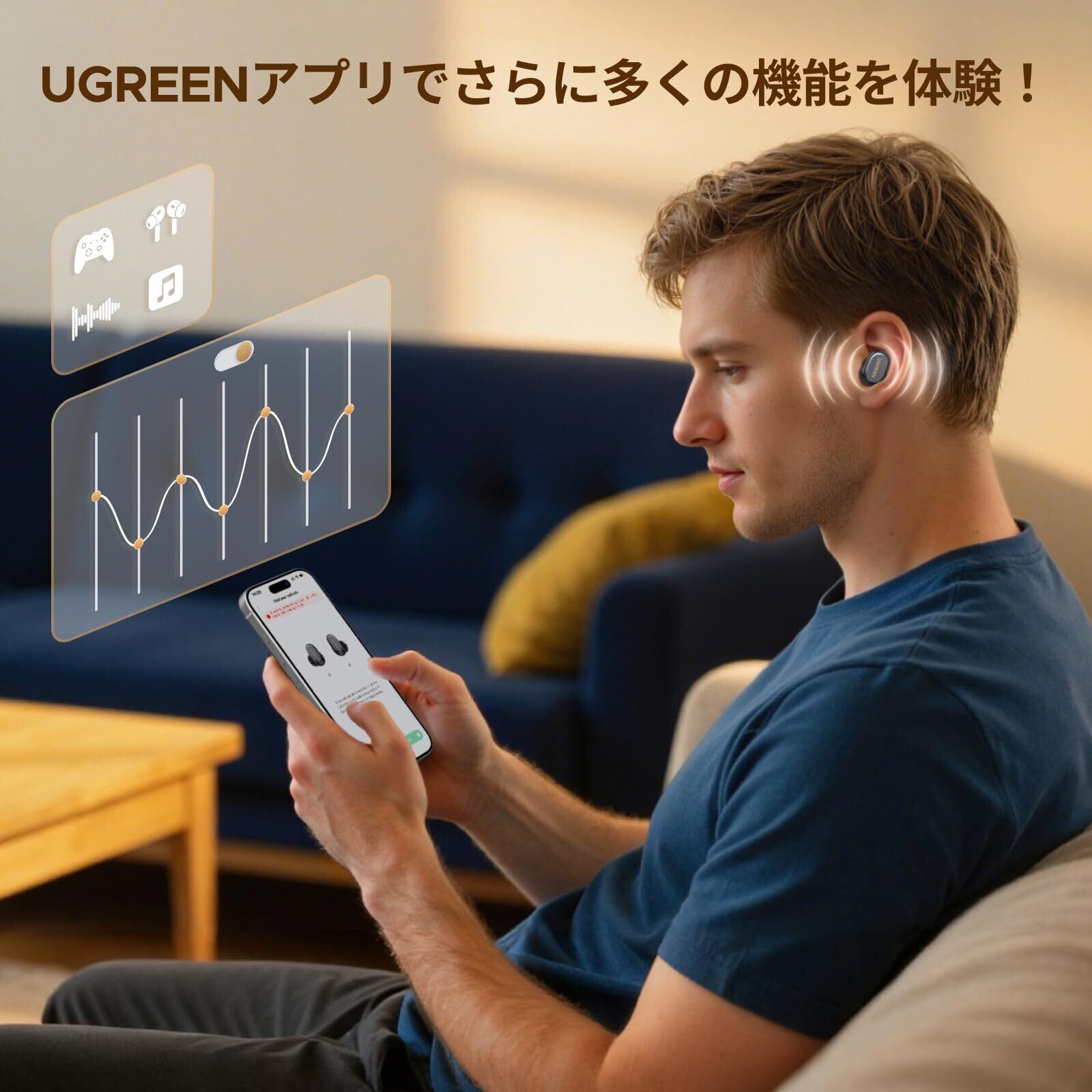 【2026最新!】UGREEN Dots ワイヤレスイヤホン Bluetooth 6.0 超小型【片耳7.3g軽量化/10mmチタニウム製ドライバー/ 合計32時間再生 /IPX5防水/AI通話ノイキャン】空間オーディオ 超軽量 2台デバイス同時接続 0.08s低遅延 APPカスタム操作 急速充電対応 耳を塞がない ブラック | kki