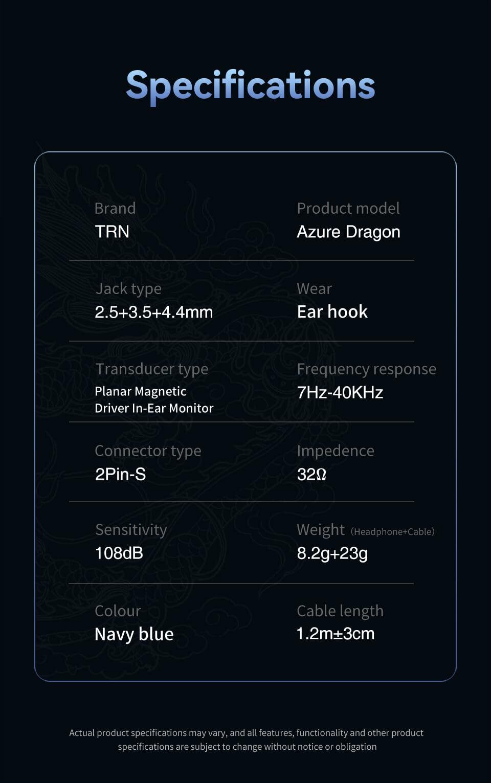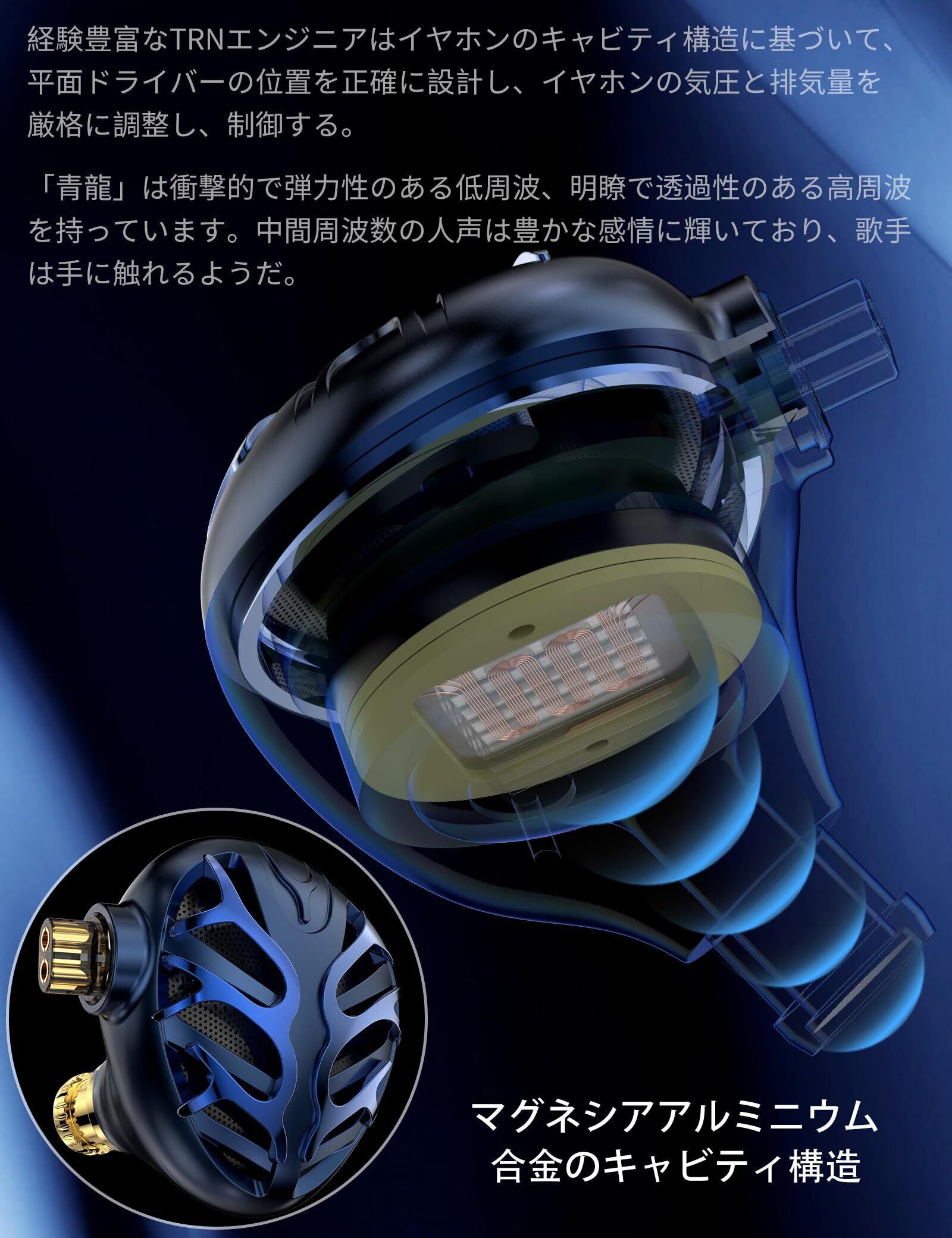TRN Azure Dragon 青龍 イヤモニ ハイエンド 平面駆動 イヤホン ハイレゾ 平面磁気ドライバ モニターイヤホン 高遮音性 IEM イヤーモニター カナル型 イアフォン 有線 アルミハウジング 2.5/3.5/4.4mm 交換式プラグ QDC脱着式ケーブル | kki