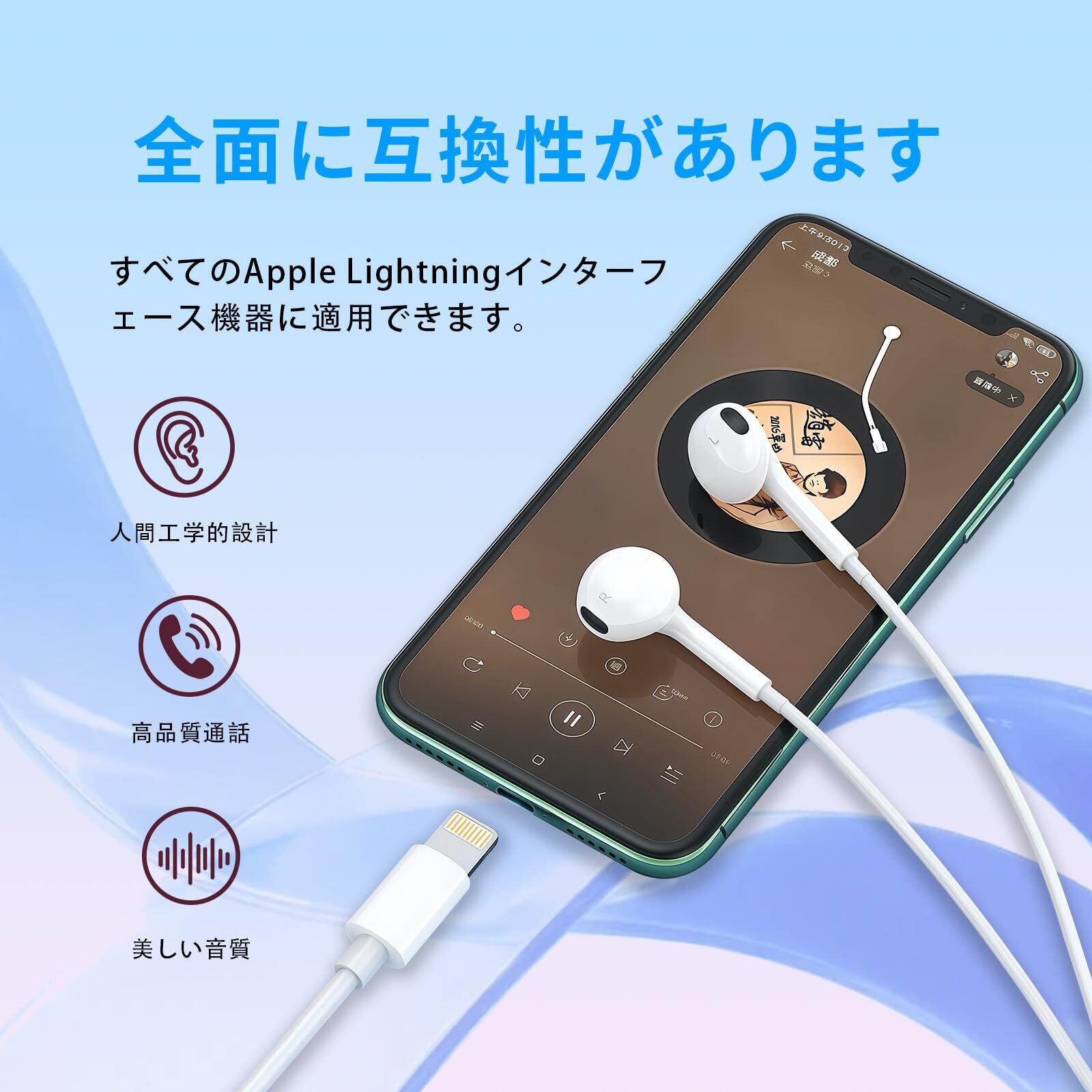 【MFi認証】イヤホン iphone イヤホン有線 HiFi音質 重低音 ハイレゾクリア通話 内蔵マイク 遅延なし 人間工学に適合 音量調節 絡まり防止 小型で軽量 iPhone14/13/12/11/11/SE/Xs/Xs Max/XR/X/8/7適用(iOS26に対応) | kki