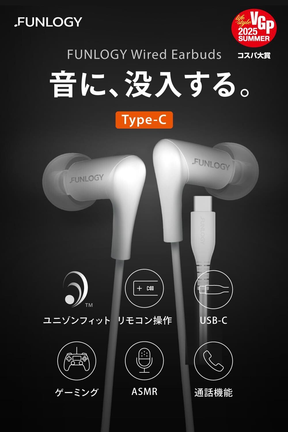 FUNLOGY Wired Earbuds 有線イヤホン (USB Type-C, ホワイト)