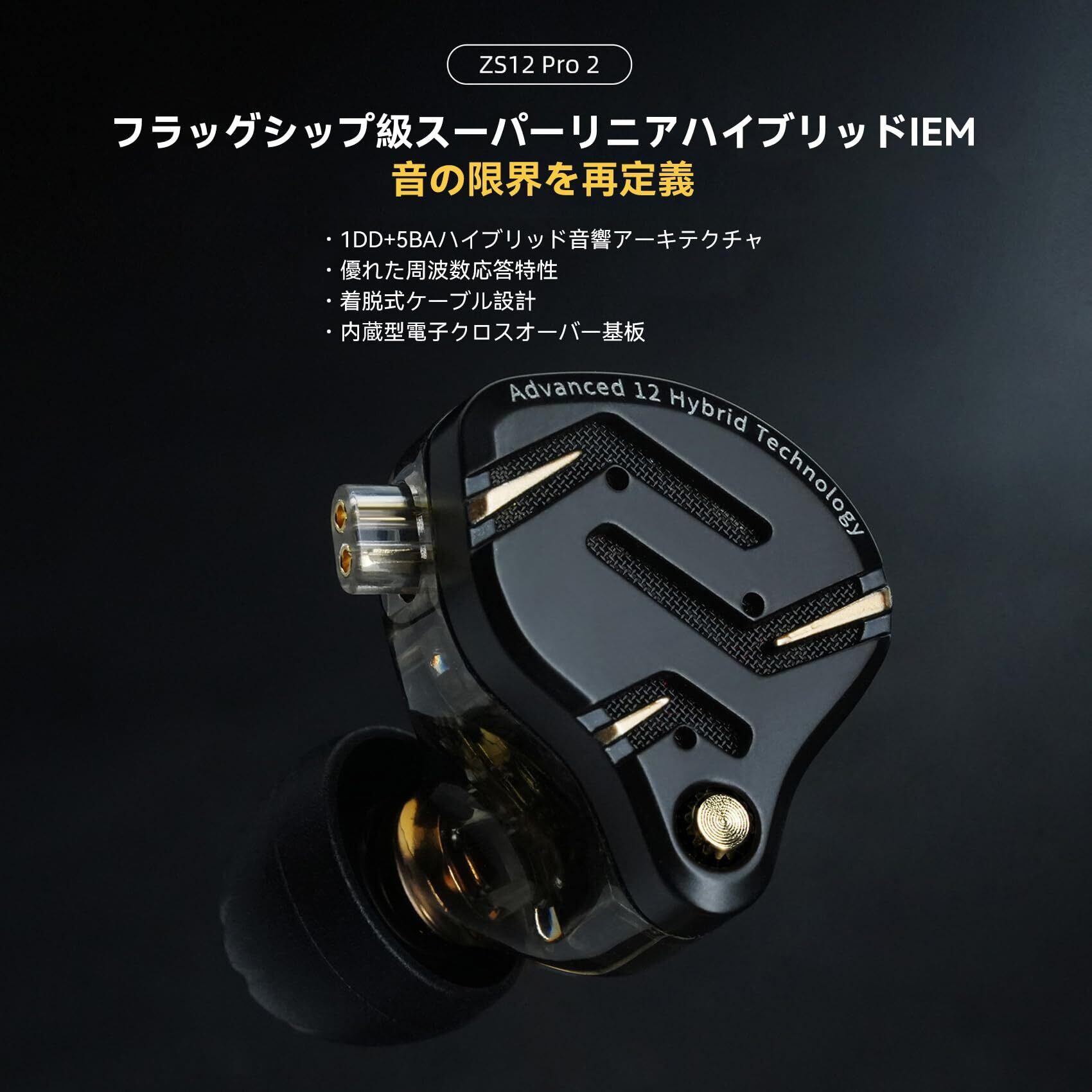 KZ ZS12 Pro 2 kz イヤホン 1DD+5BAハイブリッドIEM 有線イヤホン イヤモニ 中華 内蔵型電子クロスオーバー基板 HIFI音質 ゲーム対応 FPS向け カナル型 earphones wired ゲーミングイヤホン有線 yinyoo 独占販売(ブラック・マイク無し) | kki