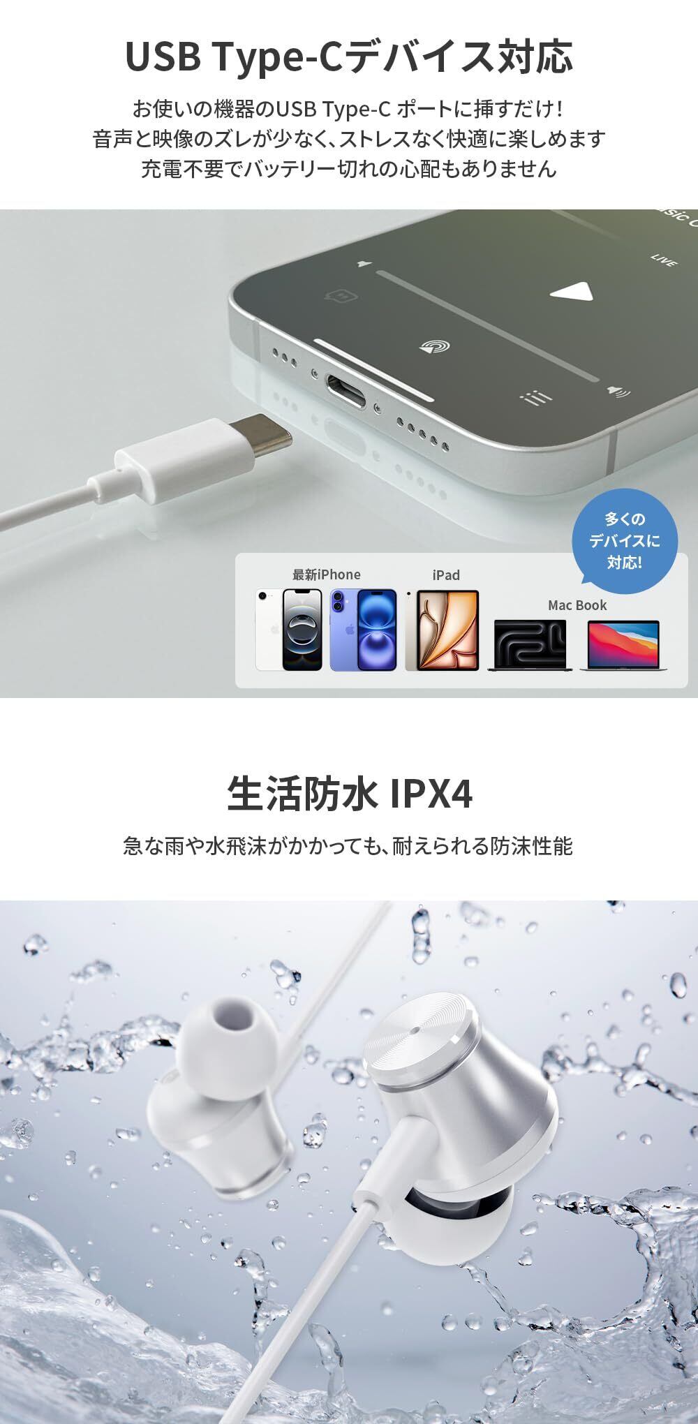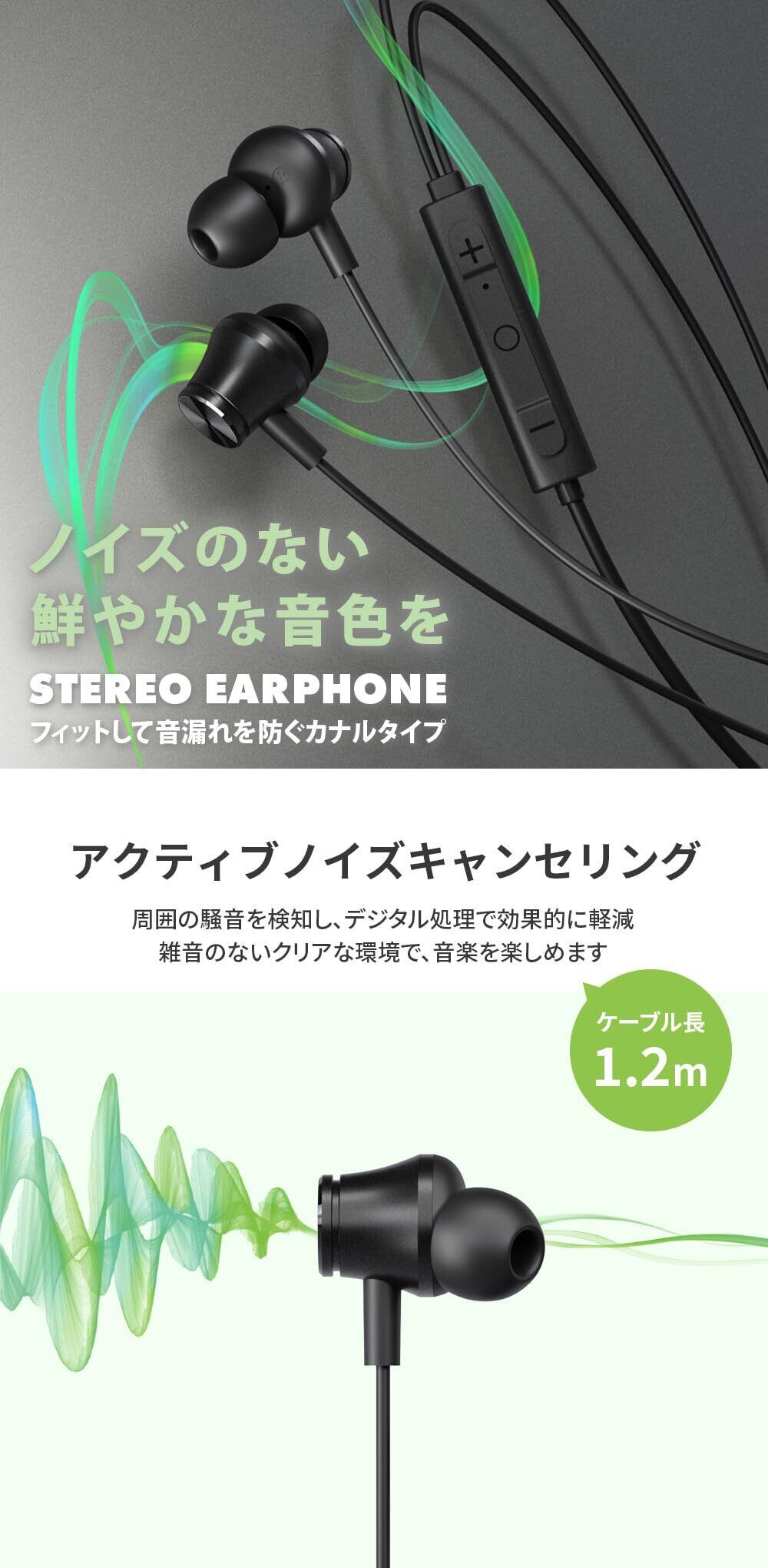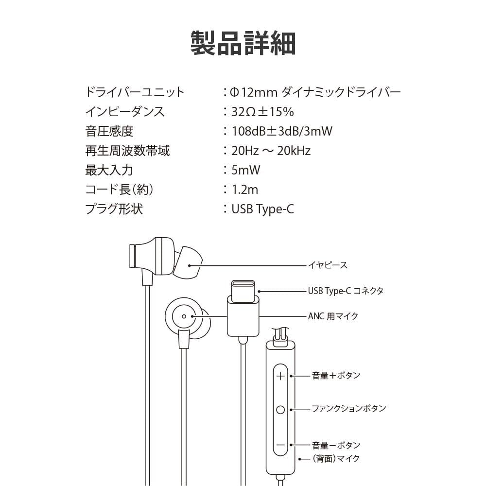 アクティブノイズキャンセリング搭載 USB Type-Cコネクタ ステレオイヤホン ブラック PG-SECE5BK1 Premium Style