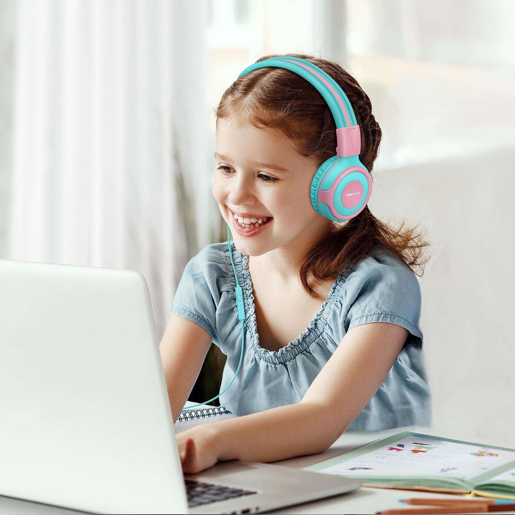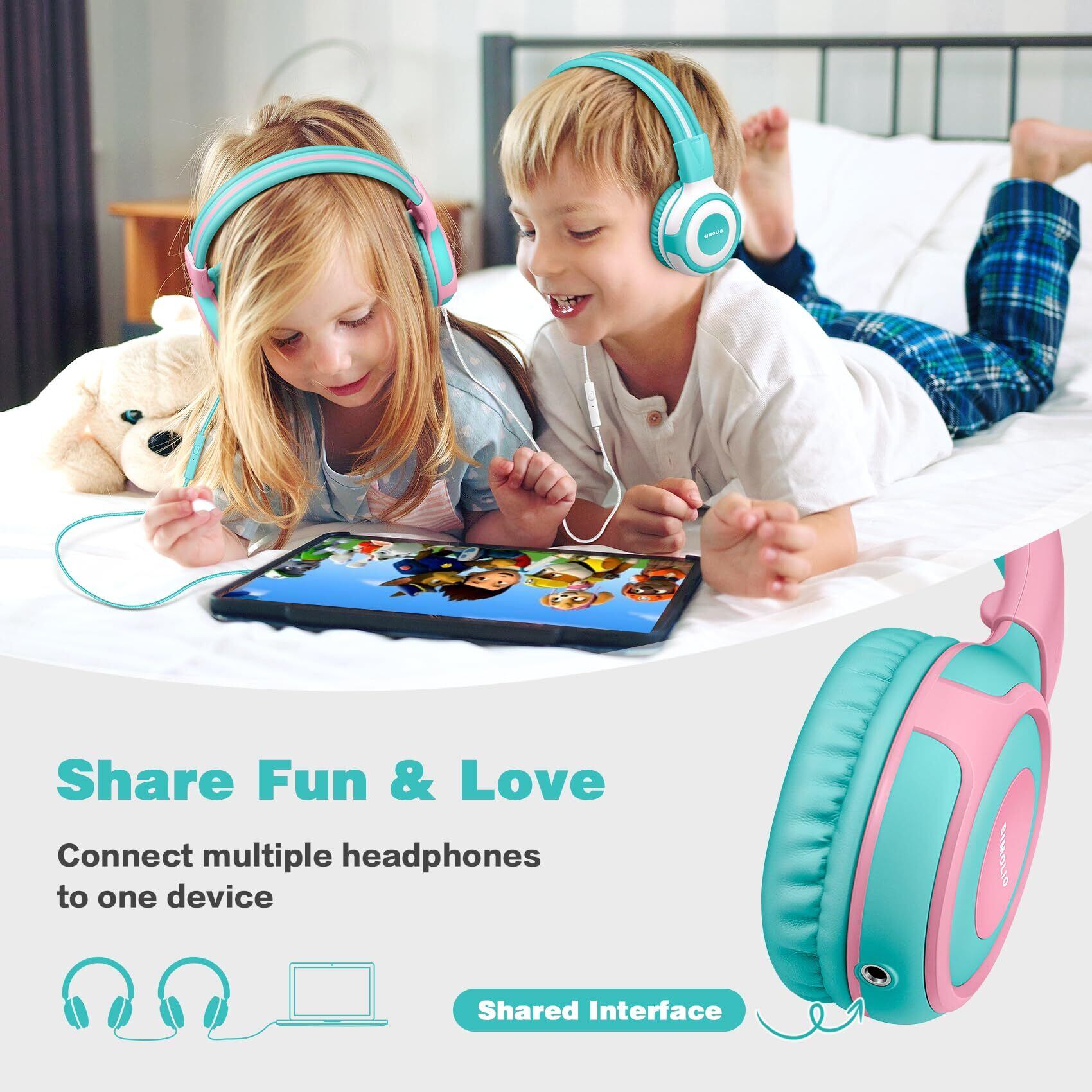 SIMOLIO キッズヘッドフォン マイク付き 75dB 85dB 94dB ボリューム制限シェアポート 子供ヘッドフォン タブレット/iPad/Kindle/ノートパソコン用 丈夫な幼児用有線ヘッドフォン バッグ付き 男の子女の子向け SM-903A | kki