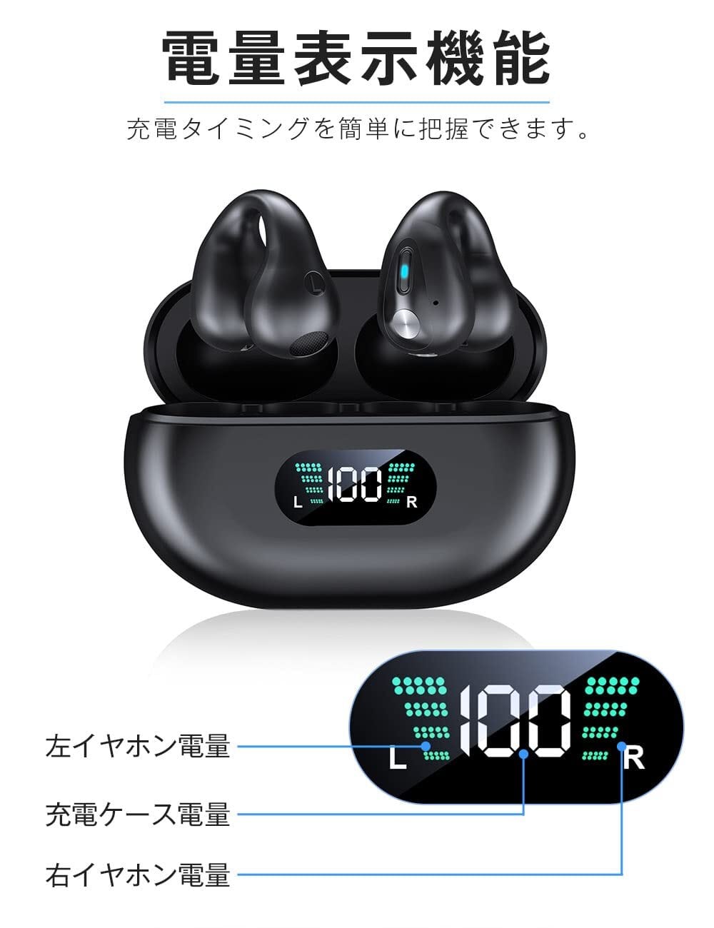 SLuB ワイヤレスイヤホン 非 骨伝導 Bluetooth 5.4 ヘッドセット 耳を塞がず 左右分離型 イヤーカフ構造 快適装着 両耳 片耳 小型 Hi-Fi音質 自動ペアリング 瞬間接続 クリア通話 マイク内蔵 8時間再生 ビジネス/仕事/勉強/通勤/通学/ランニングやスポーツなどに適用 iPhone/Android対応(ブラック) | kki
