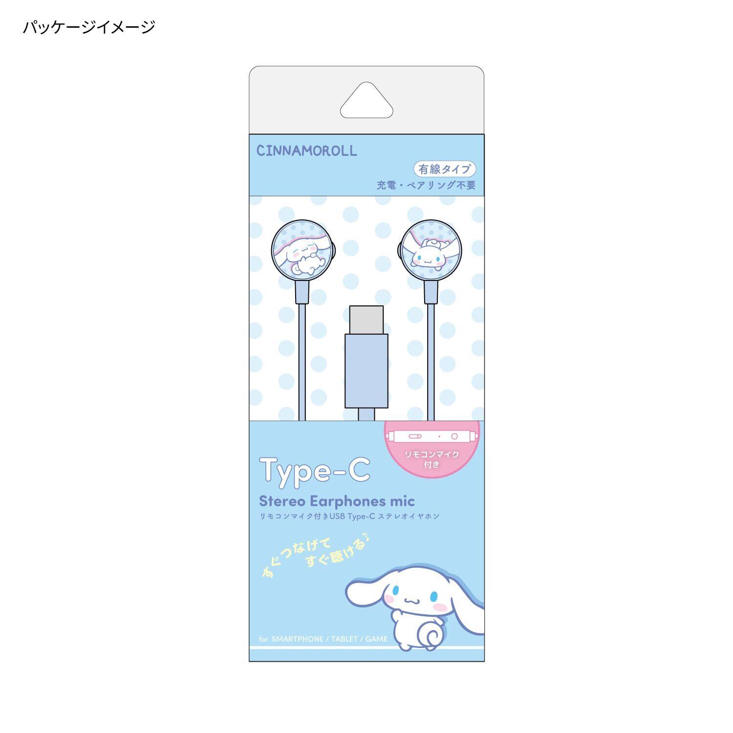 グルマンディーズ サンリオキャラクターズ リモコンマイク付き USB Type-C ステレオイヤホン シナモロール SANG-557CN