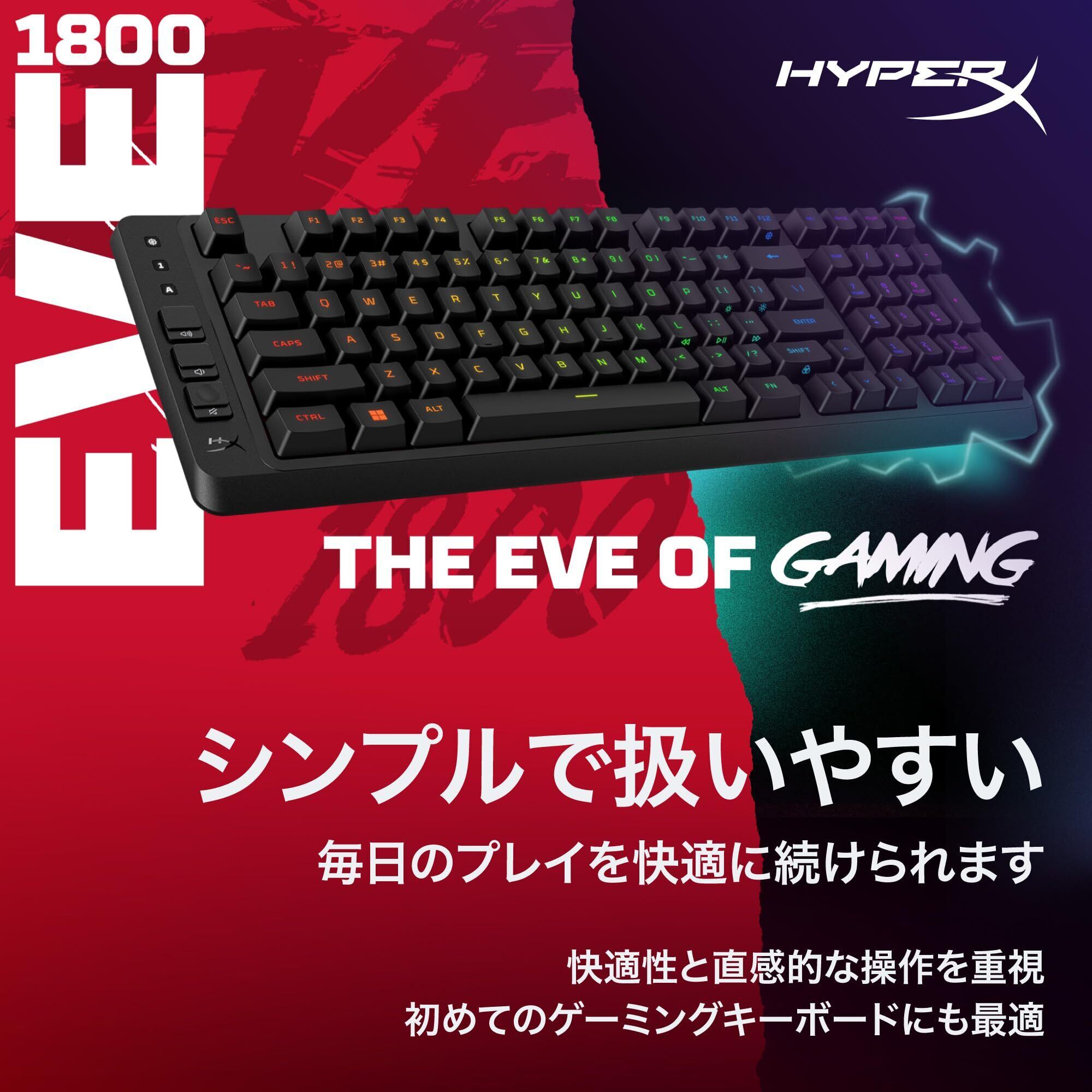 HyperX Eve 1800 ゲーミングキーボード メンブレン 有線 USB-A 日本語配列 1800レイアウト RGBバックライト メディアボタン搭載 【日本正規代理店品】 2 PS5/PS4/Xbox対応 ブラック B7JE0AA#ABJ | kki
