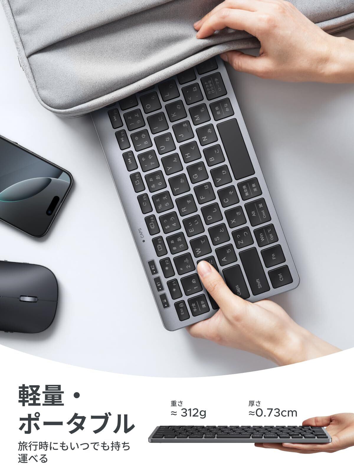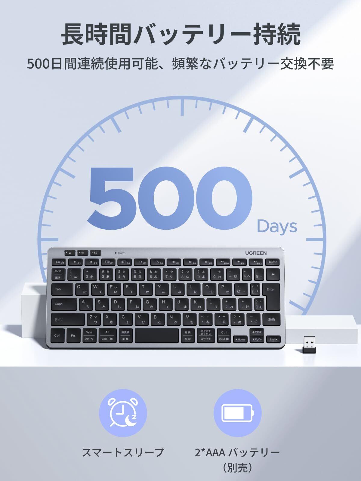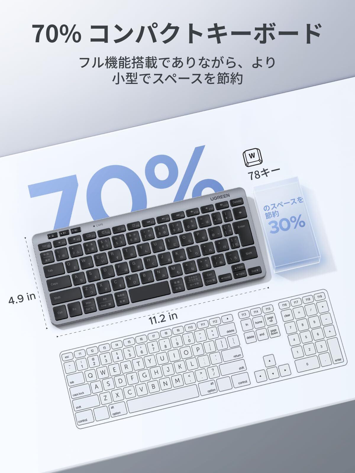UGREEN ワイヤレス 無線 キーボード Bluetooth +2.4G 三台切替可能 静音設計 キーボード 超軽量 薄型 人間工学デザイン 78キー 日本語配列 高耐久 簡単接続
