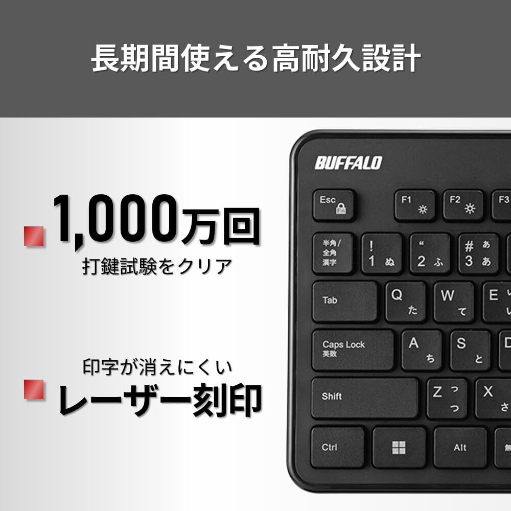 バッファロー ワイヤレス 無線 コンパクト キーボード 薄型 持ち運び テンキーレス メンブレン USB レシーバー付属 ブラック BSKBW145BK