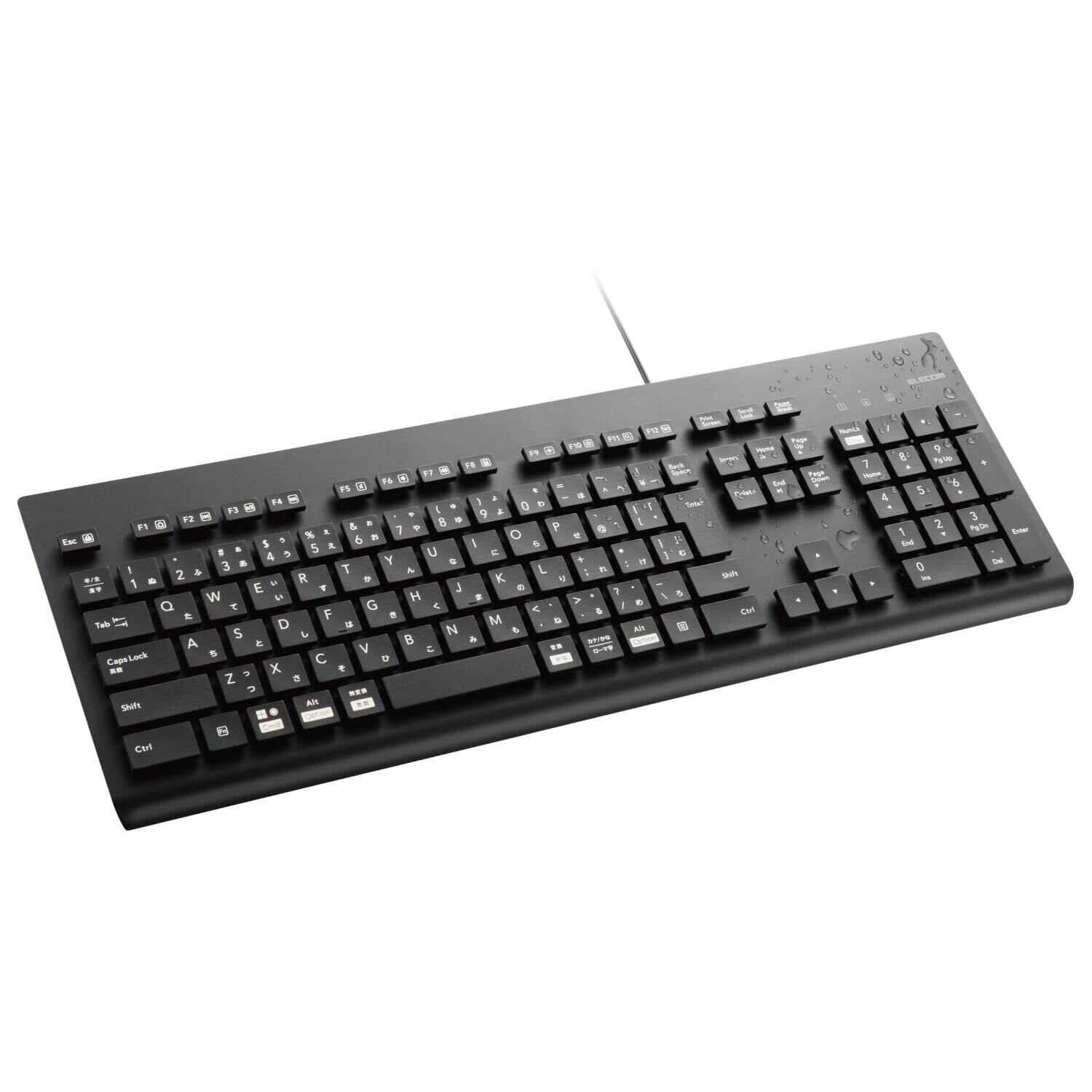 エレコム 洗える キーボード 有線 防水 IPX5対応 メンブレン フルサイズ テンキー付 抗菌 ブラック TK-WS01UMKBK