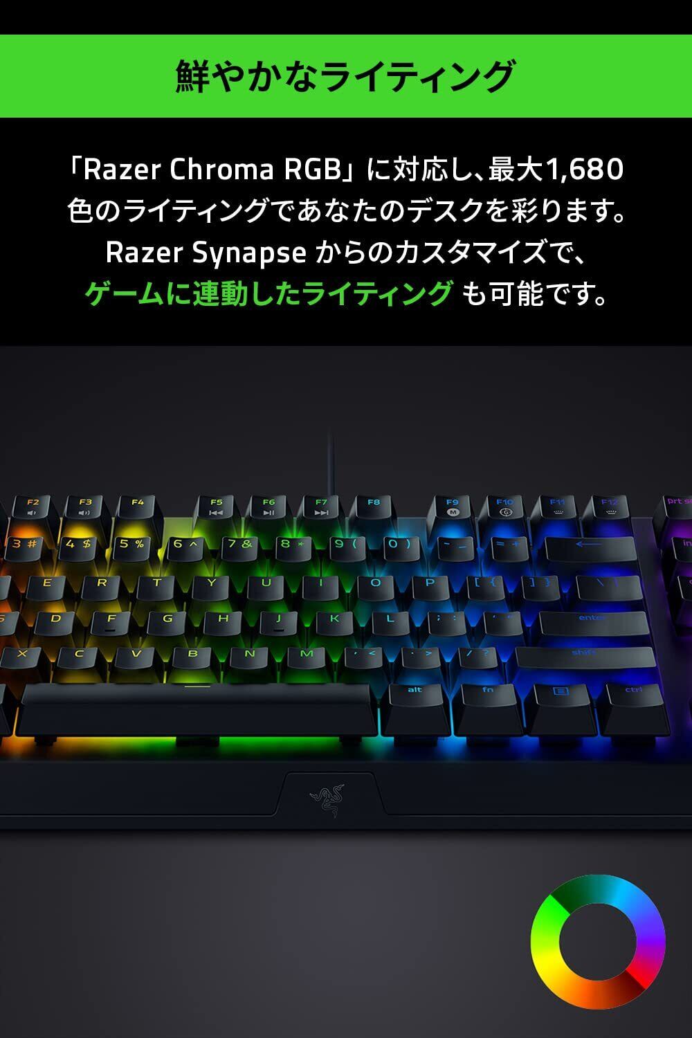 Razer ゲーミングキーボード テンキーレス メカニカルキーボード BlackWidow V3 Tenkeyless JP - Green Switch メカニカル グリーン軸 クリアハウジング Chroma RGB 高耐久アルミ製トッププレート 印字の消えないABS キーキャップ 日本語 JP配列 【日本正規代理店品】 RZ03-03491400-R3J1-N ブラック | kki