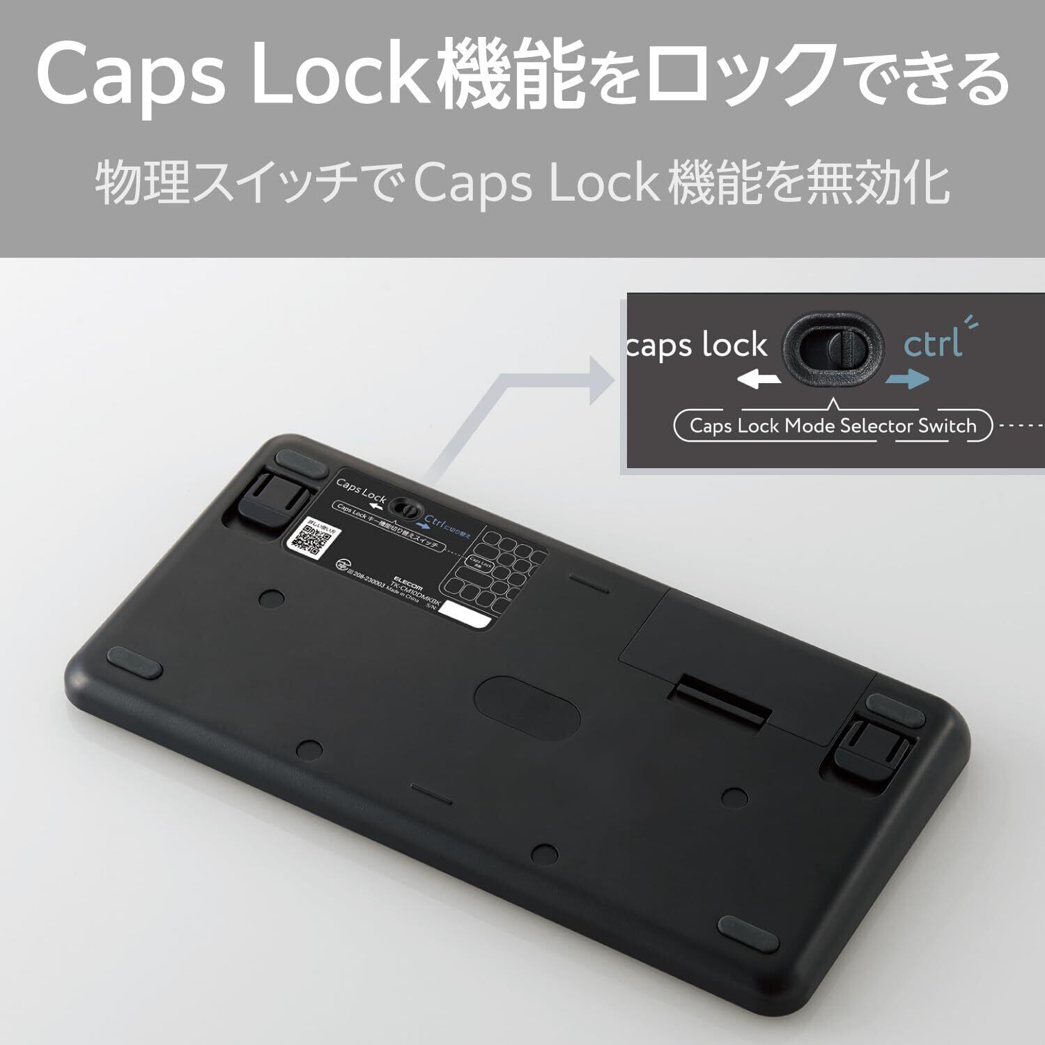 エレコム ワイヤレス キーボード 無線 メンブレン式 コンパクト Caps Lock機能無効化スイッチ搭載 500万回高耐久キー採用 抗菌 Windows 11/10 対応 ブラック TK-CM10DMKBK | kki
