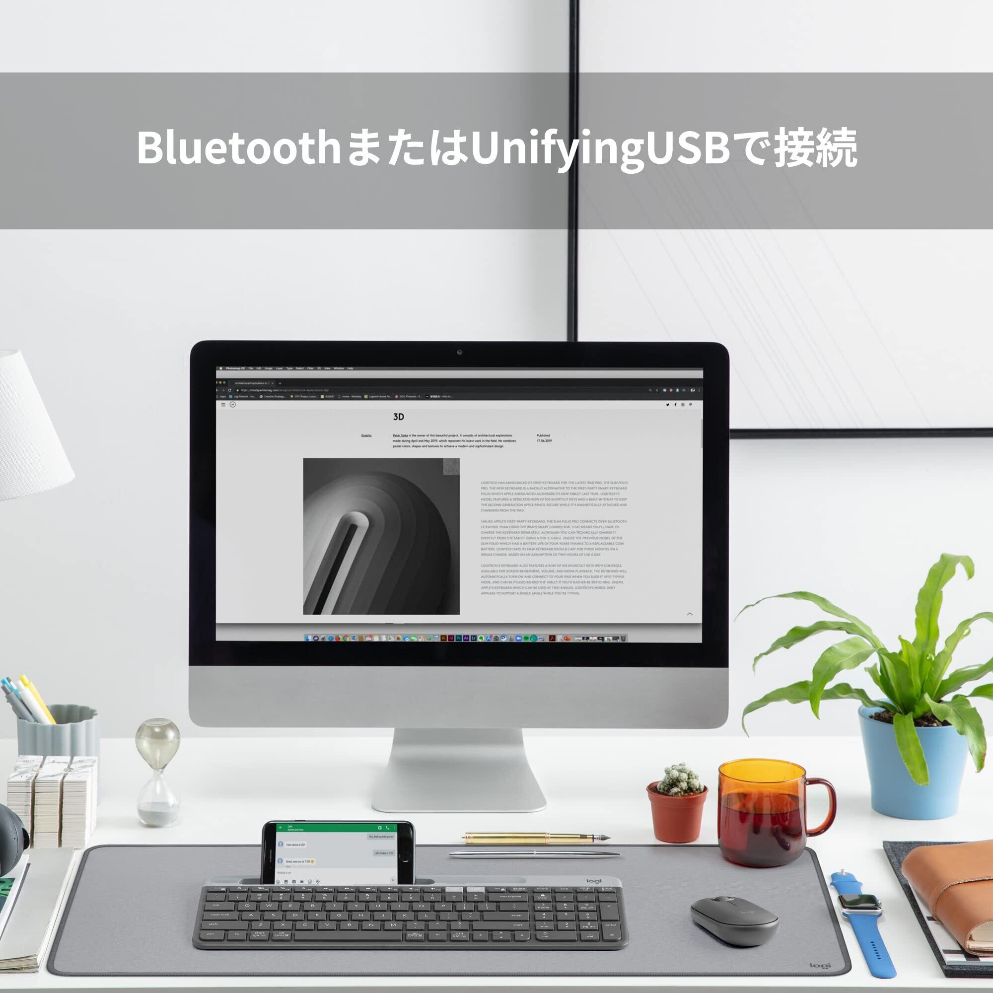 ロジクール 静音 Bluetooth ワイヤレスキーボード K580GR グラファイト 超薄型 小型 Unifying ワイヤレス キーボード 薄型 テンキー 無線 Windows Mac iPad iOS Android Chrome Surface K580 国内正規品 | kki