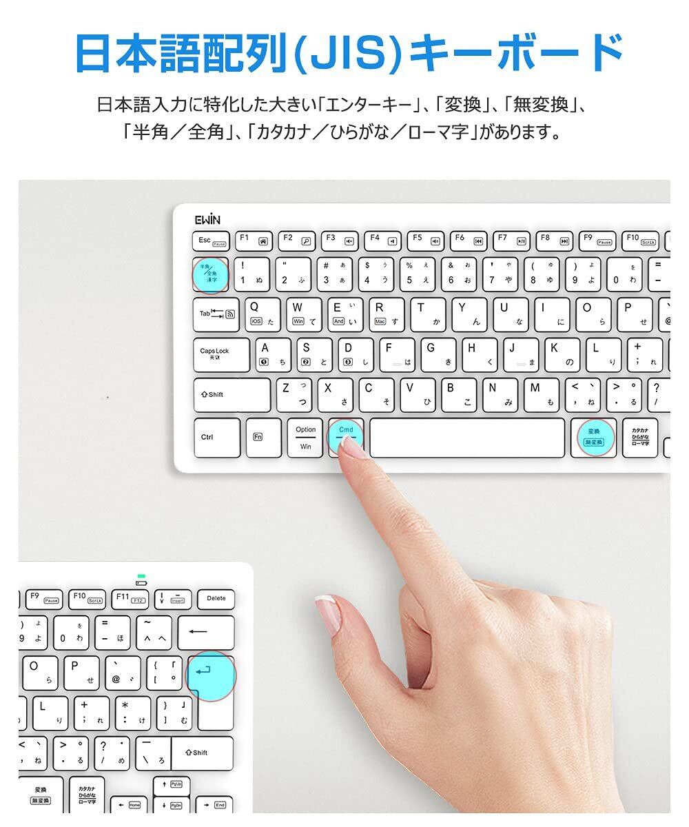 Ewin Bluetoothキーボード 日本語配列 マルチペアリング 3台同時接続 タブレット スマホ アイパッド ノート PC用 iOS Android Windows Mac対応 スタンド付き 在宅勤務 リモートワーク用 かな入力 ワイヤレス キーボード ホワイト | kki