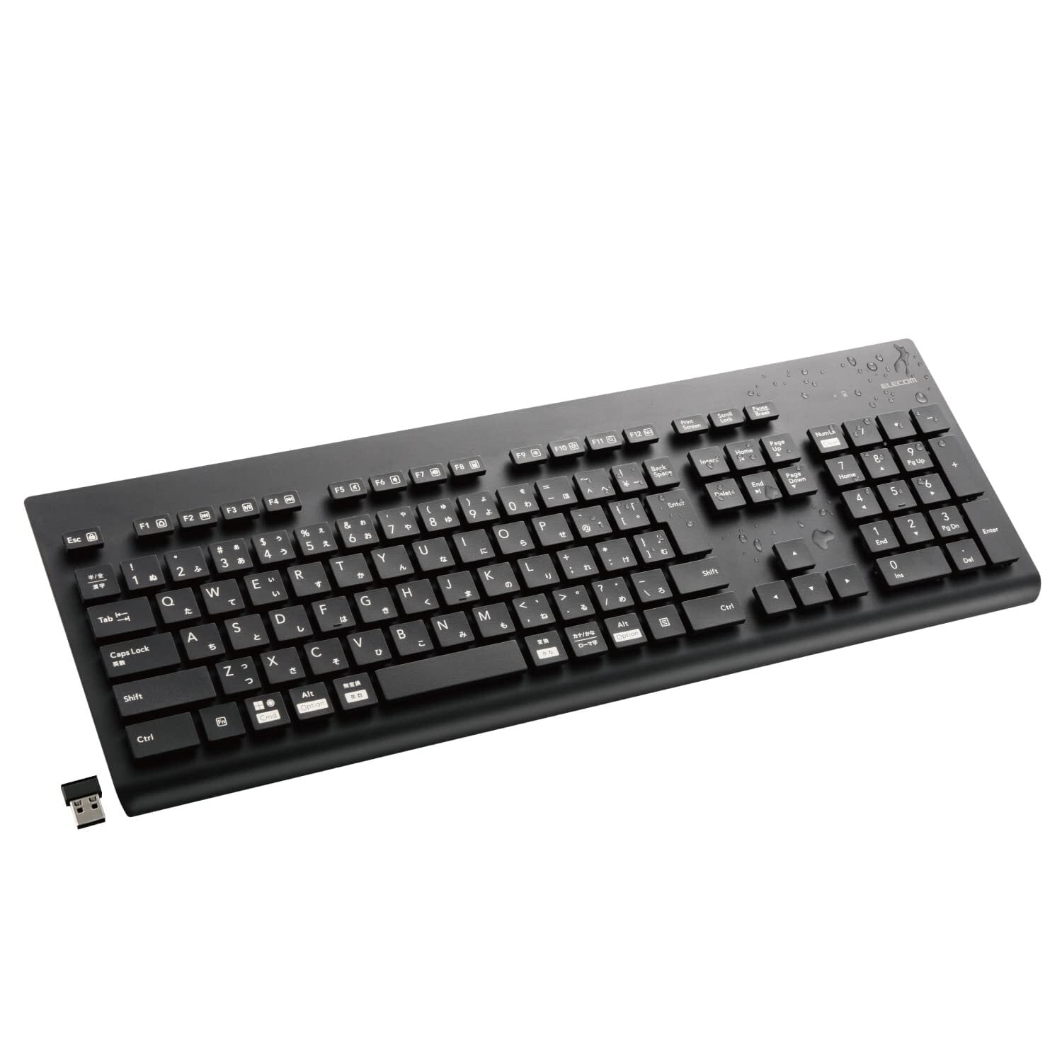 エレコム 洗える ワイヤレスキーボード 防水 IPX5対応 メンブレン フルサイズ テンキー付 抗菌 ブラック TK-WS02DMKBK
