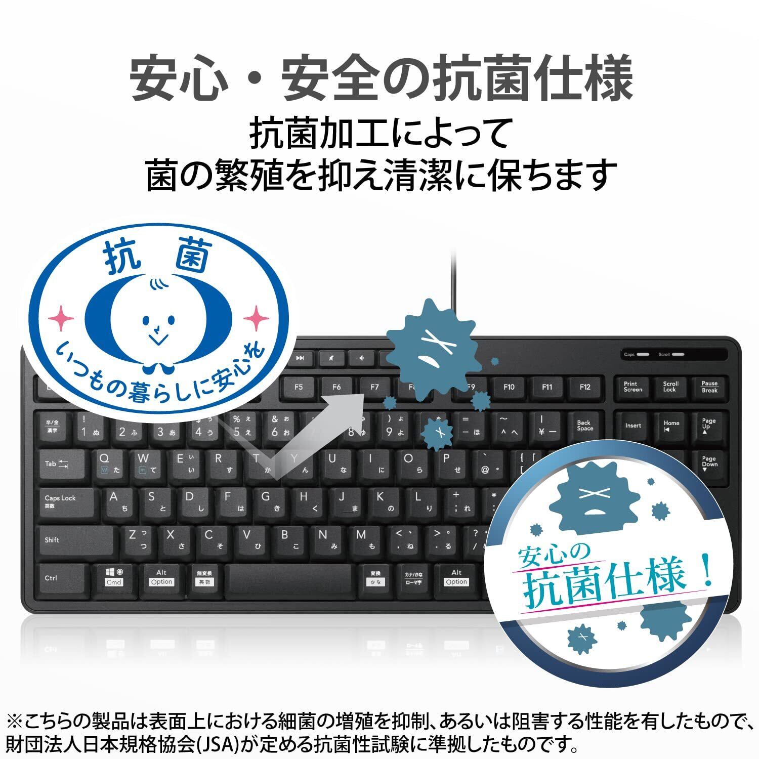 エレコム(ELECOM) 有線 キーボード 静音設計 テンキーレス 抗菌 ブラック TK-FCM113SKBK