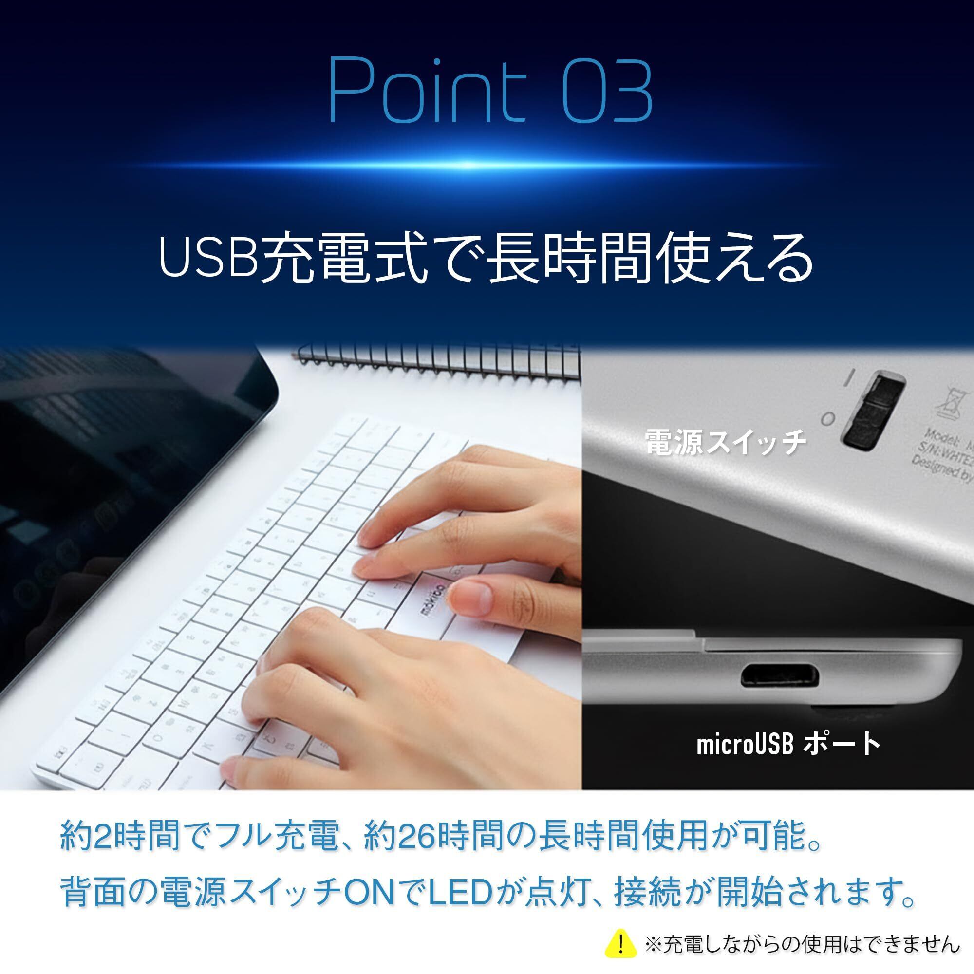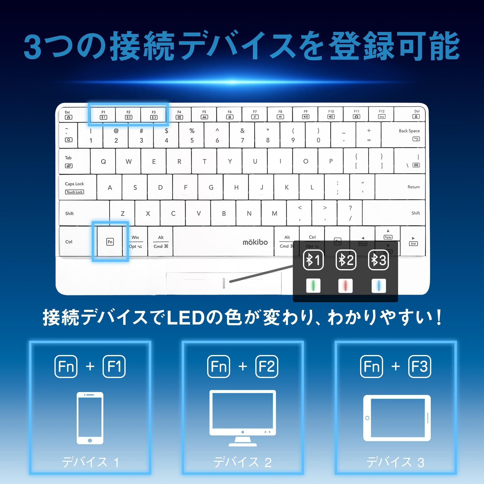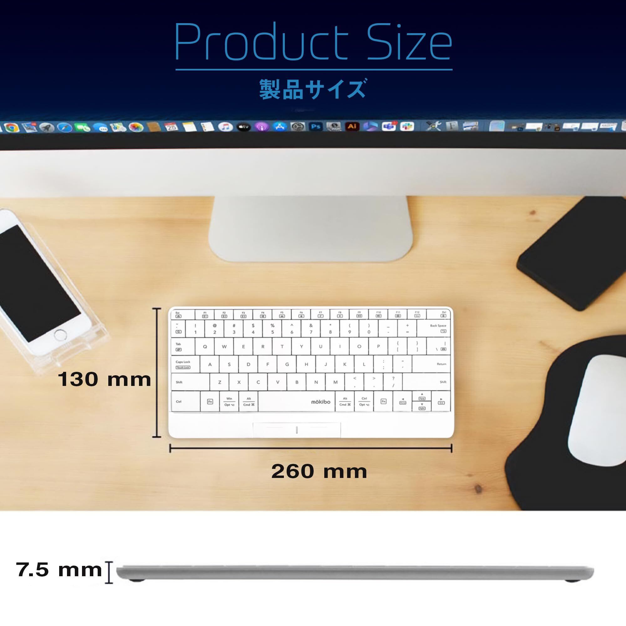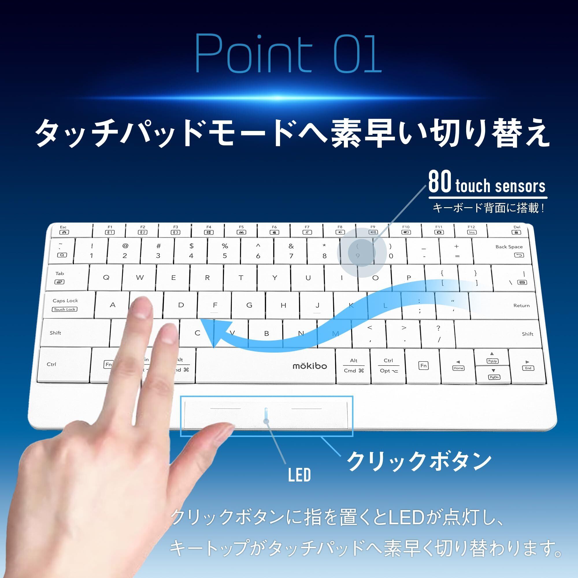 INNOPRESSO タッチパッド内蔵 マルチデバイス対応 Bluetooth ワイヤレスキーボード mokibo 英語配列 (ホワイト) MacOS/iOS/androidOS/Win対応 MKB316US_WH | kki