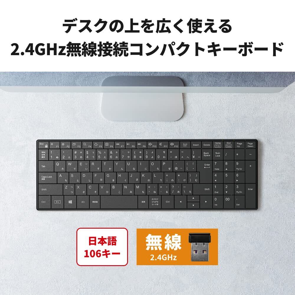 バッファロー 2.4GHz 無線 コンパクト キーボード PC/Windows/Mac 対応 リモート テレワーク 在宅 ブラック BSKBW335BK