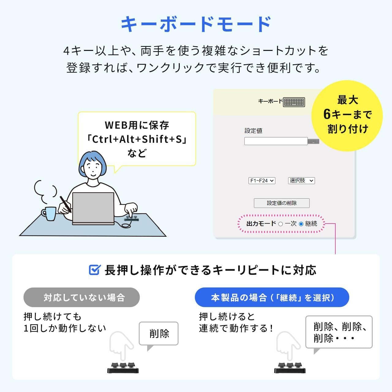 サンワダイレクト プログラマブルキーボード マクロキーボード Windows専用 有線接続 バックライト付き 3キー 青軸 割付/割り当て マクロ機能 ゲーミング ブラック 400-SKB075 | kki