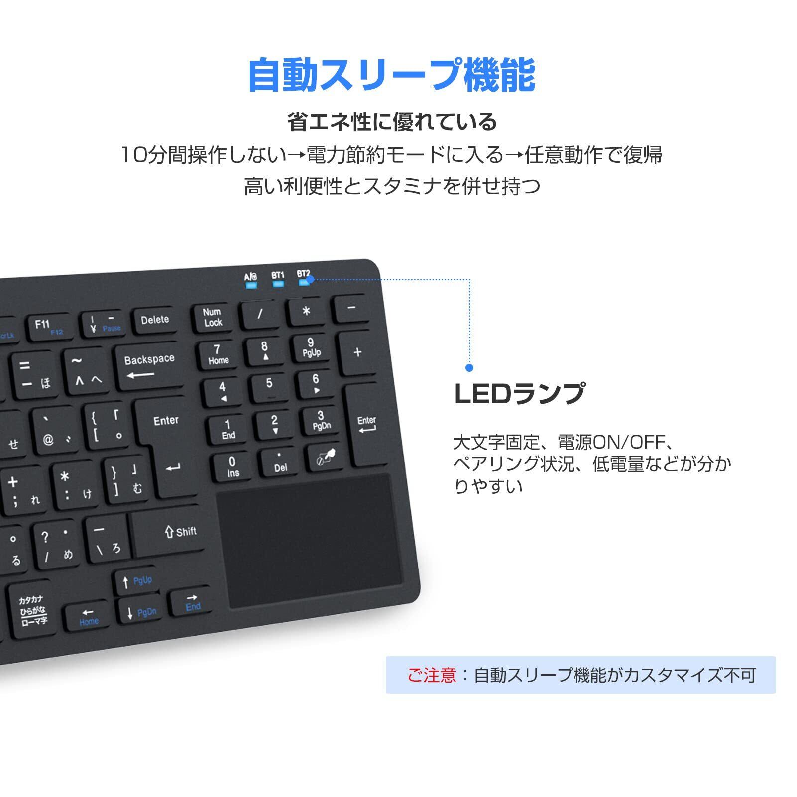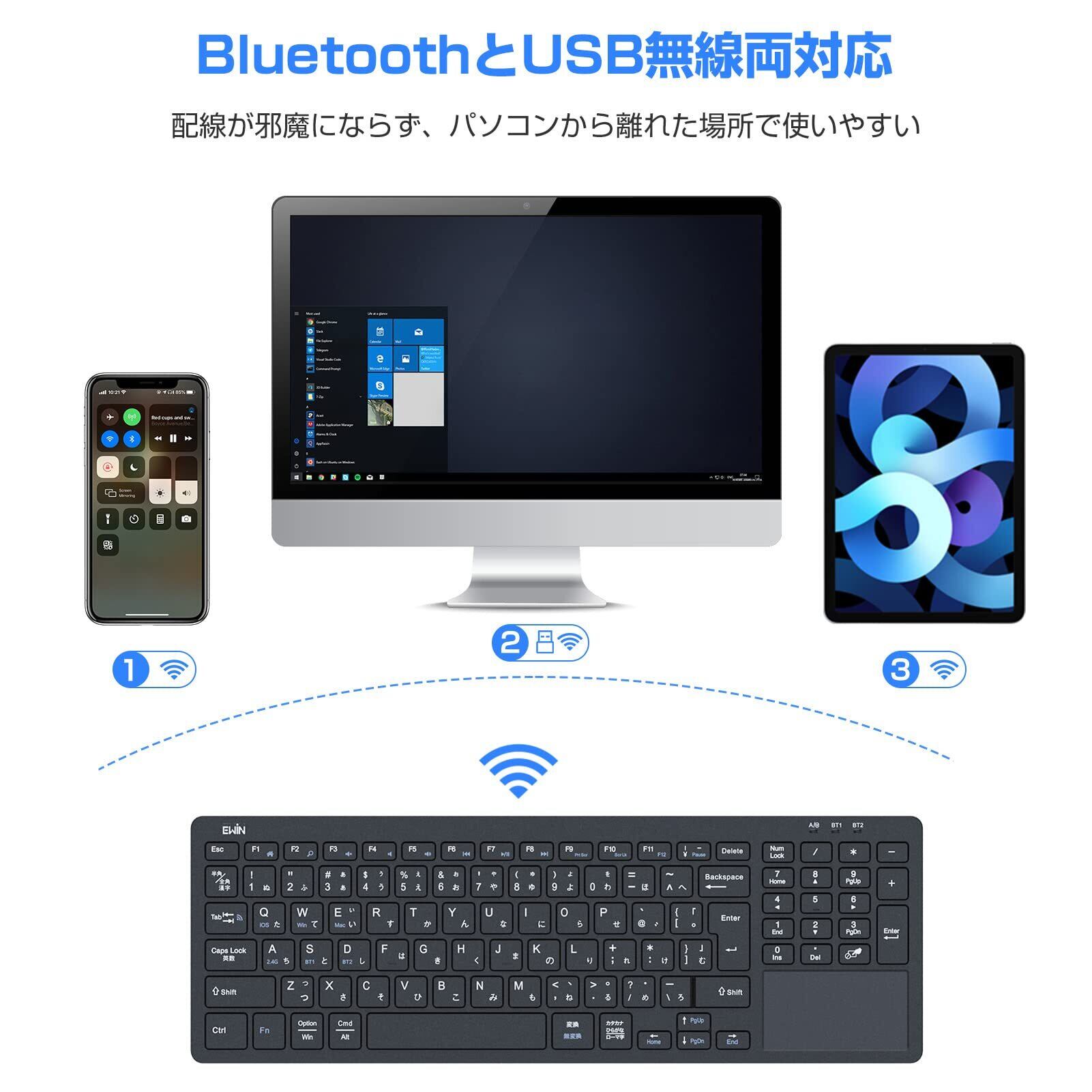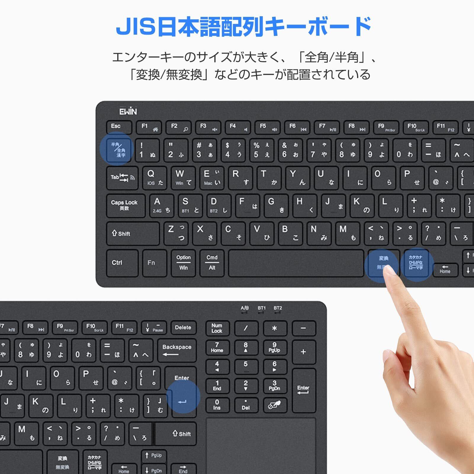 Ewin Bluetooth/USB 無線両対応キーボード ワイヤレスキーボード 無線 2.4G タッチパッド テンキー付き JIS日本語配列 USB接続 レシーバー付き 電池式ノートPC/パソコン/タブレット/スマホ用 Windows/Mac/iOS対応 在宅勤務 テレワーク ブラック | kki