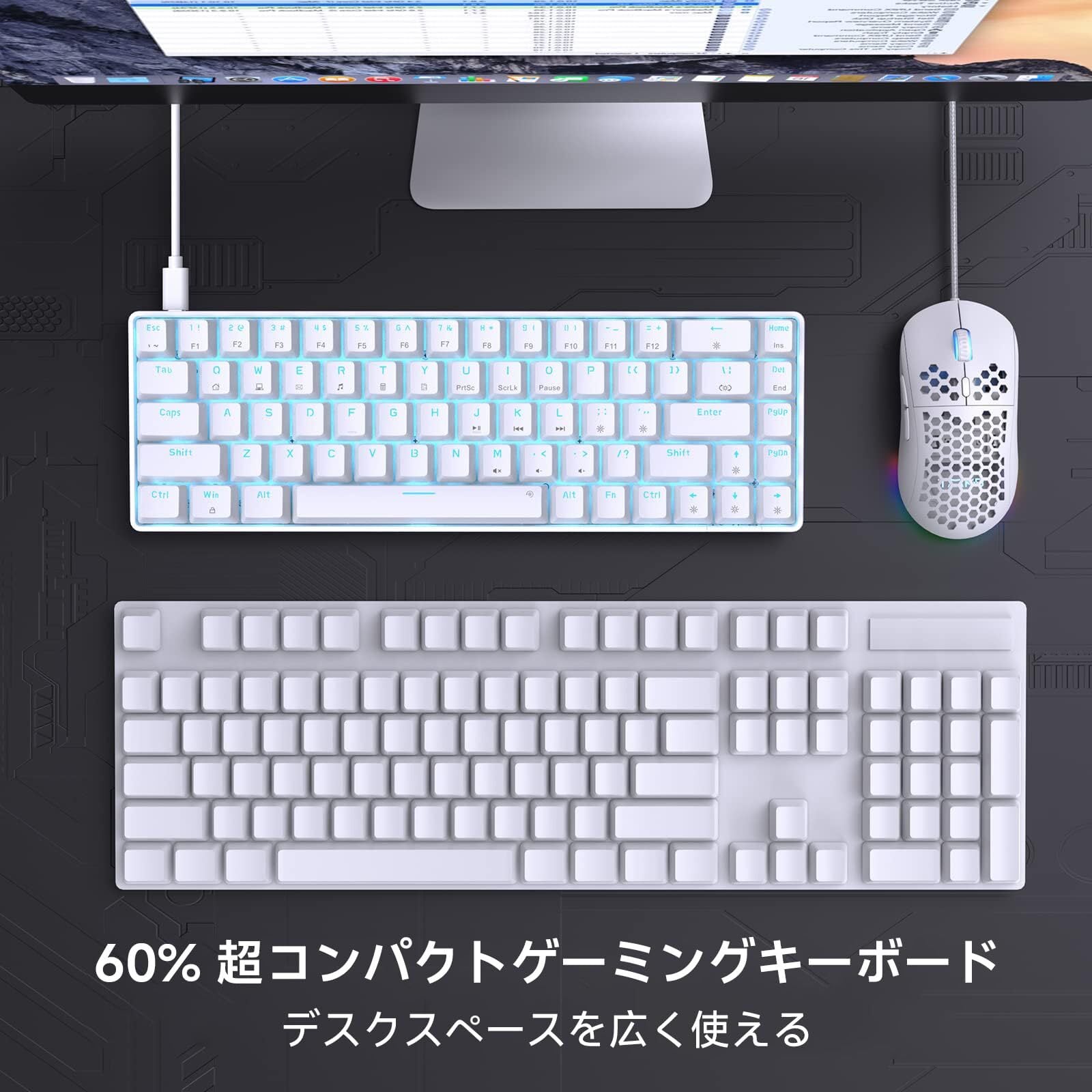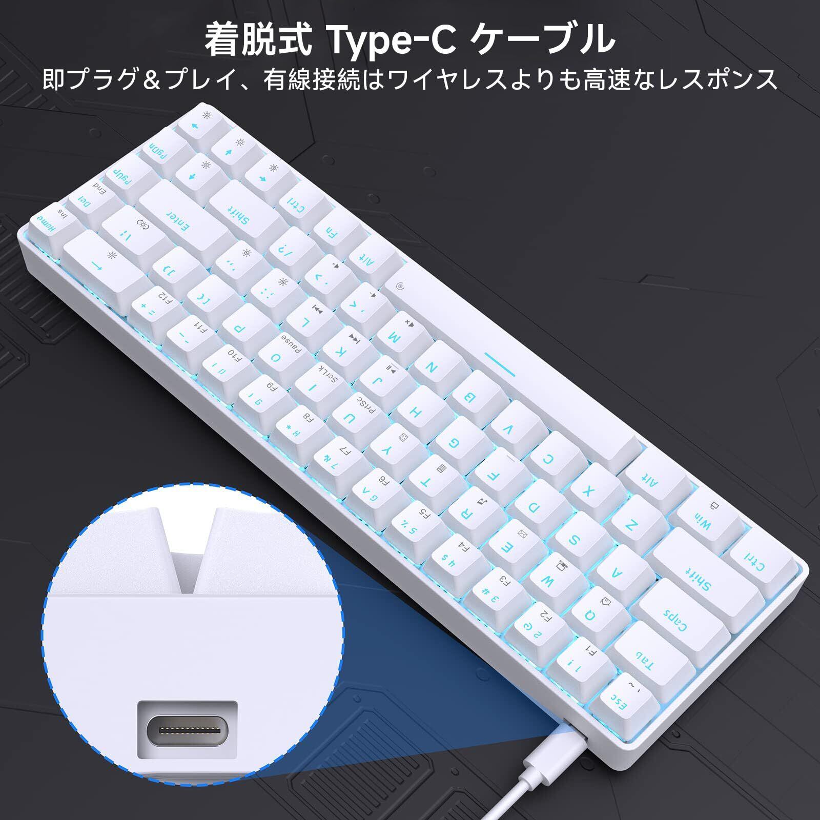 DIERYA DK68SE ゲーミングメカニカルキーボード 有線接続 65%配列 68キー 青軸 氷ブルーバックライト 全キー無衝突 英語配列 Windows/Mac対応