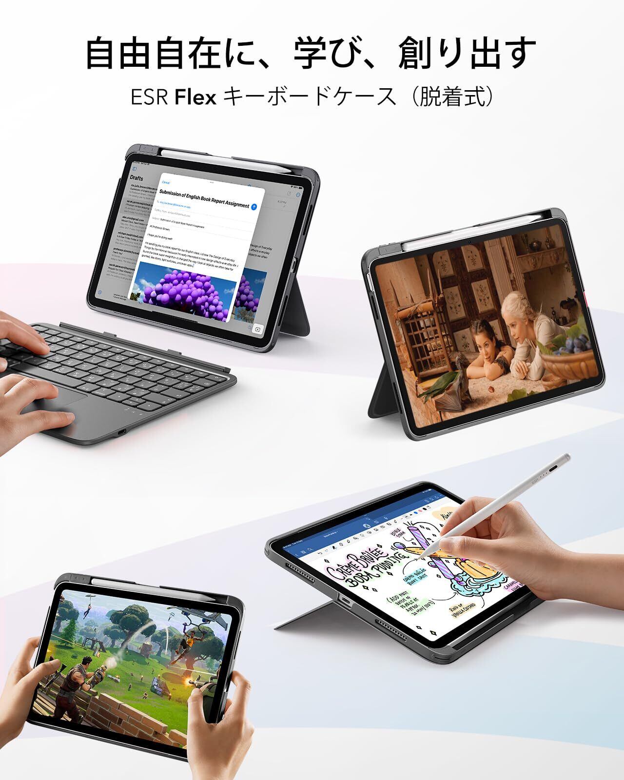 ESR iPad 第11世代(A16, 2025)/第10世代 Flex キーボードケース、iPad 10.9 用超軽量マグネット着脱式キーボード、書き込み/表示モード付き、大型精密トラックパッド、ダークグレー、日本語版 | kki