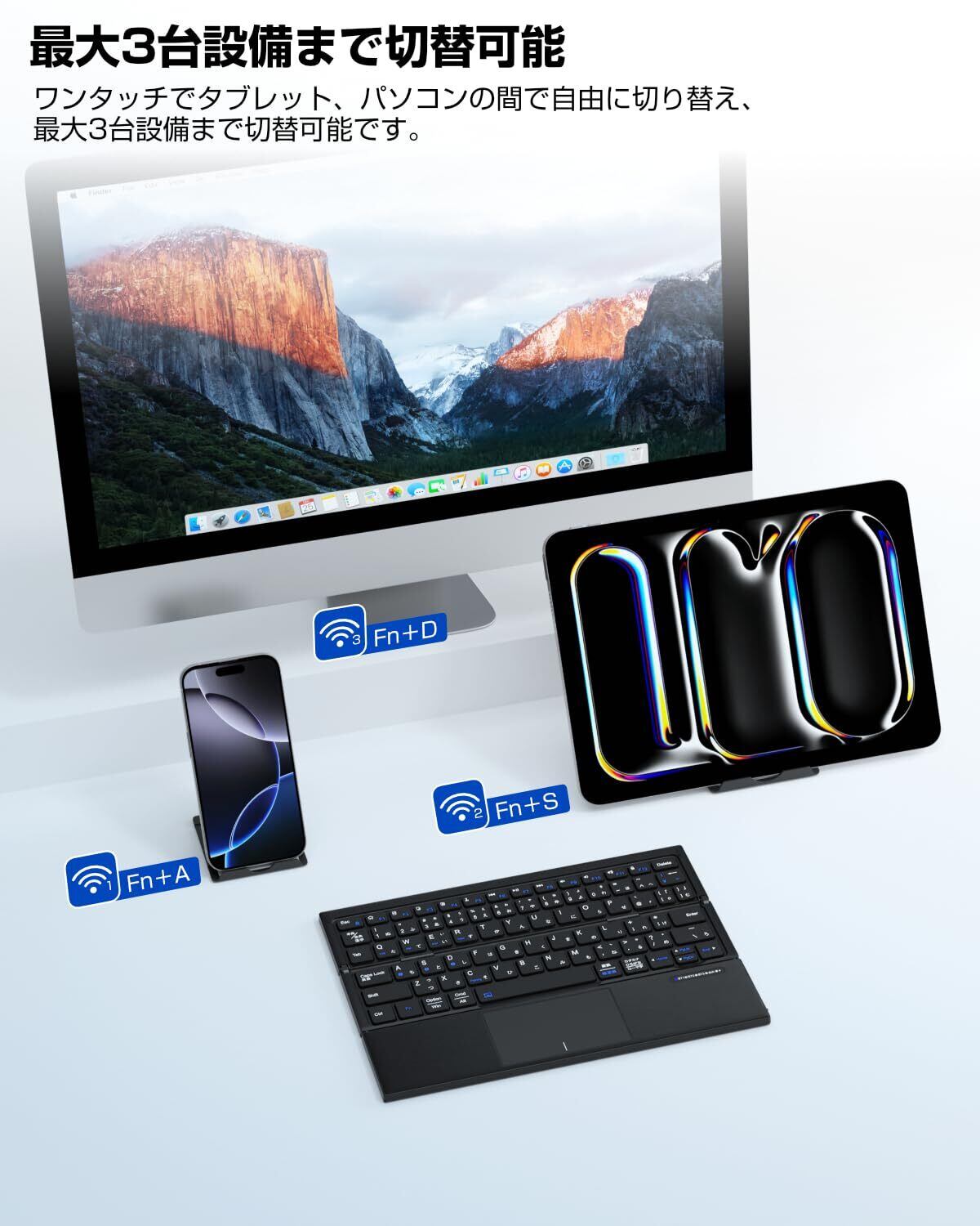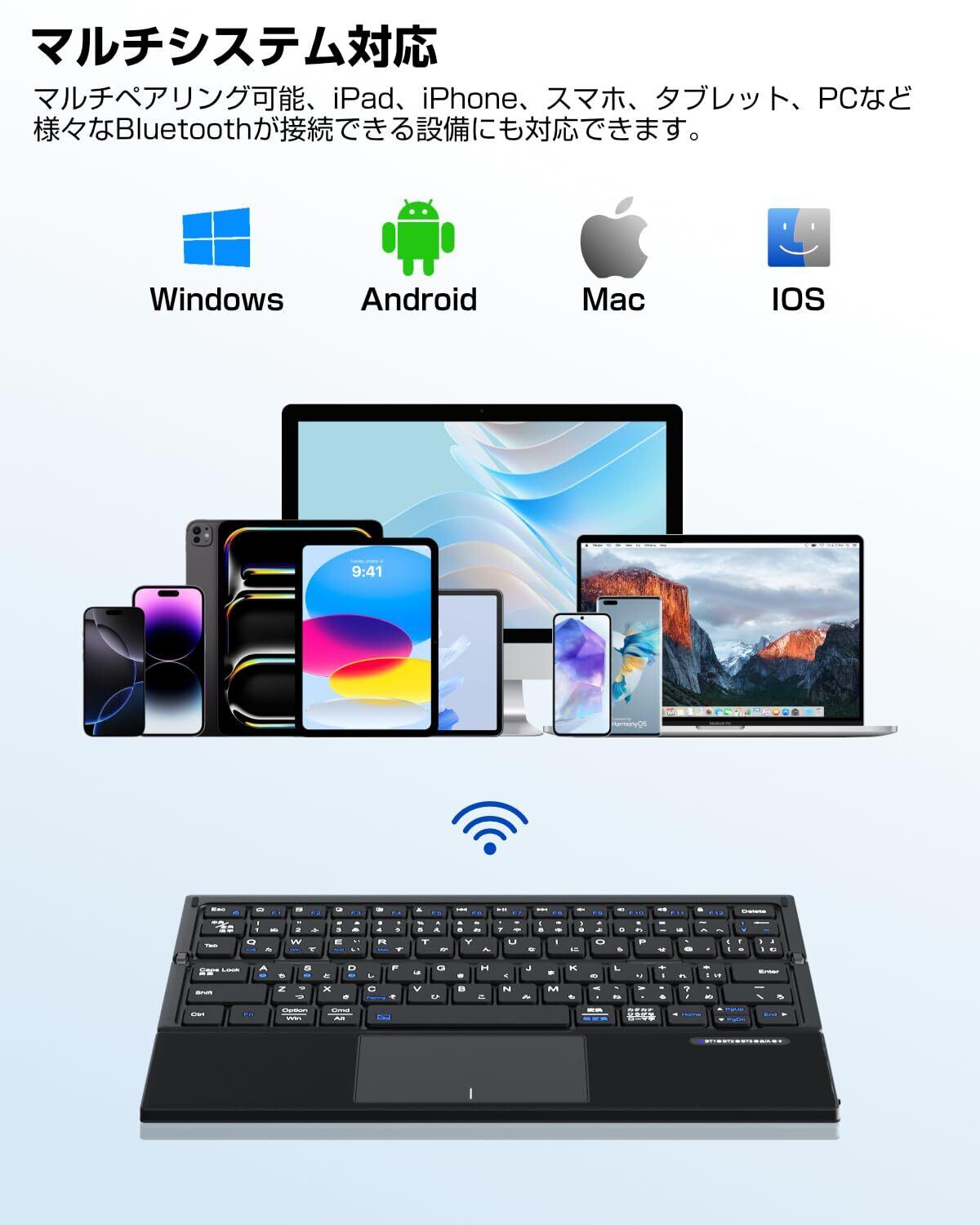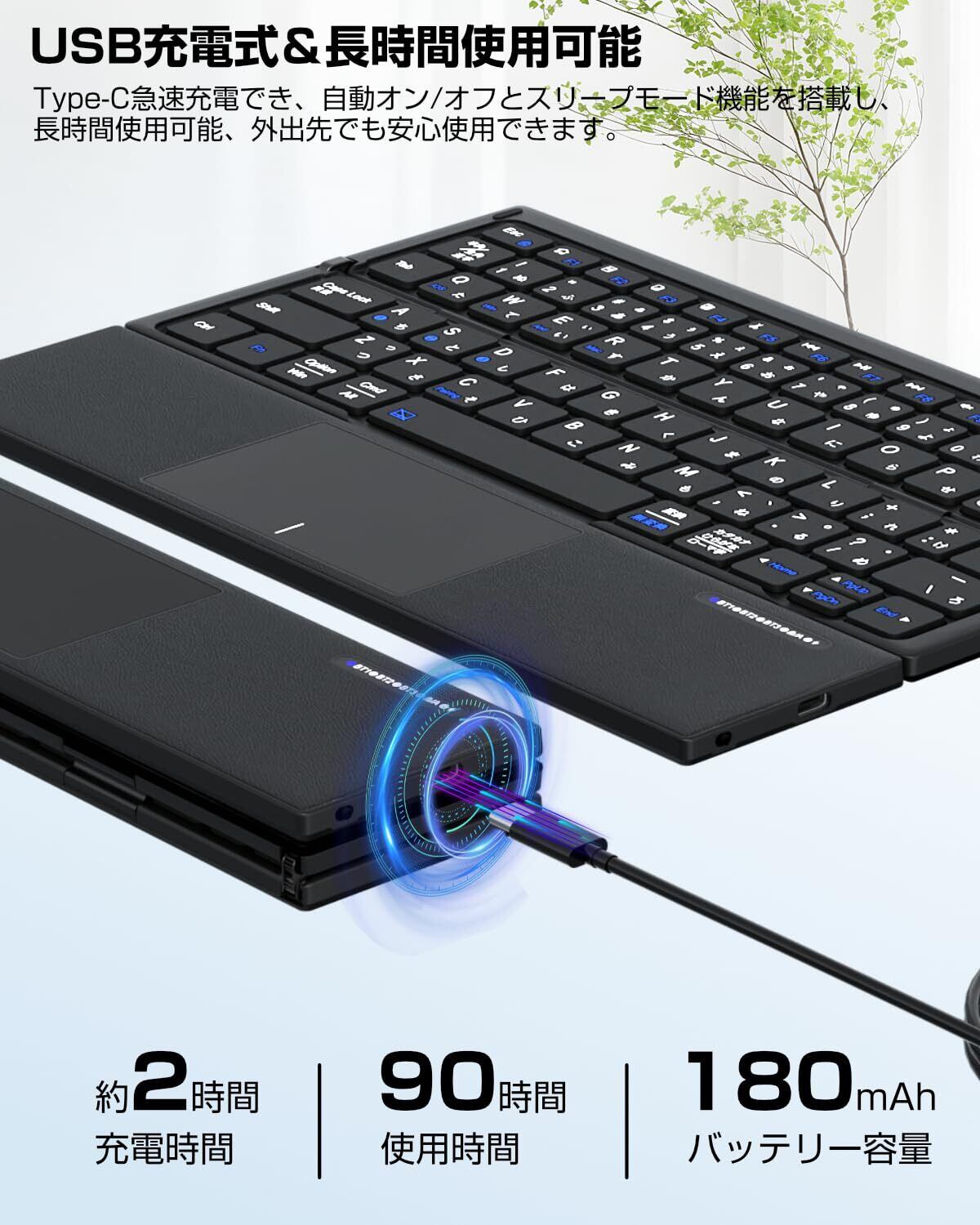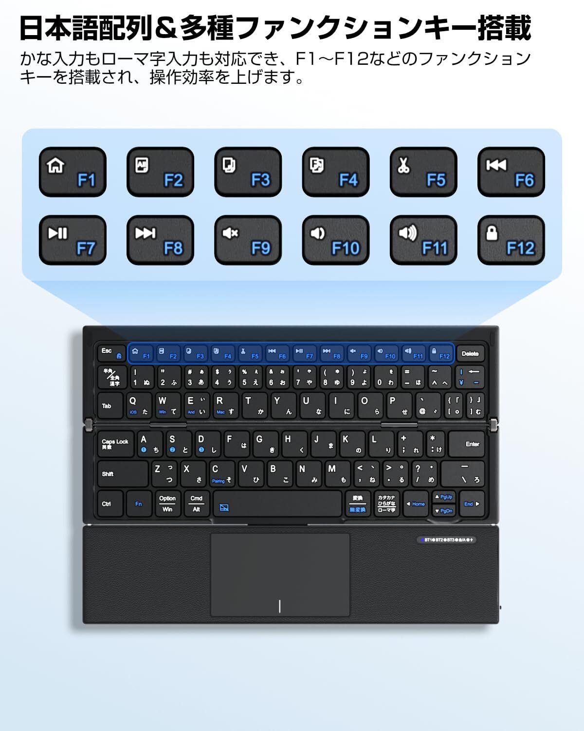 Ewin キーボード 折りたたみ式 ワイヤレス bluetooth接続 JIS日本語配列 ipad パソコン タブレット スマホ マチルペアリング 3台同時接続 Windows/iOS/Android/Mac対応 タッチパット付き type-c充電式 コンパクト 快適な打鍵感 おしゃれ 軽量 薄型 ビジネス用 旅行 ブラック | kki