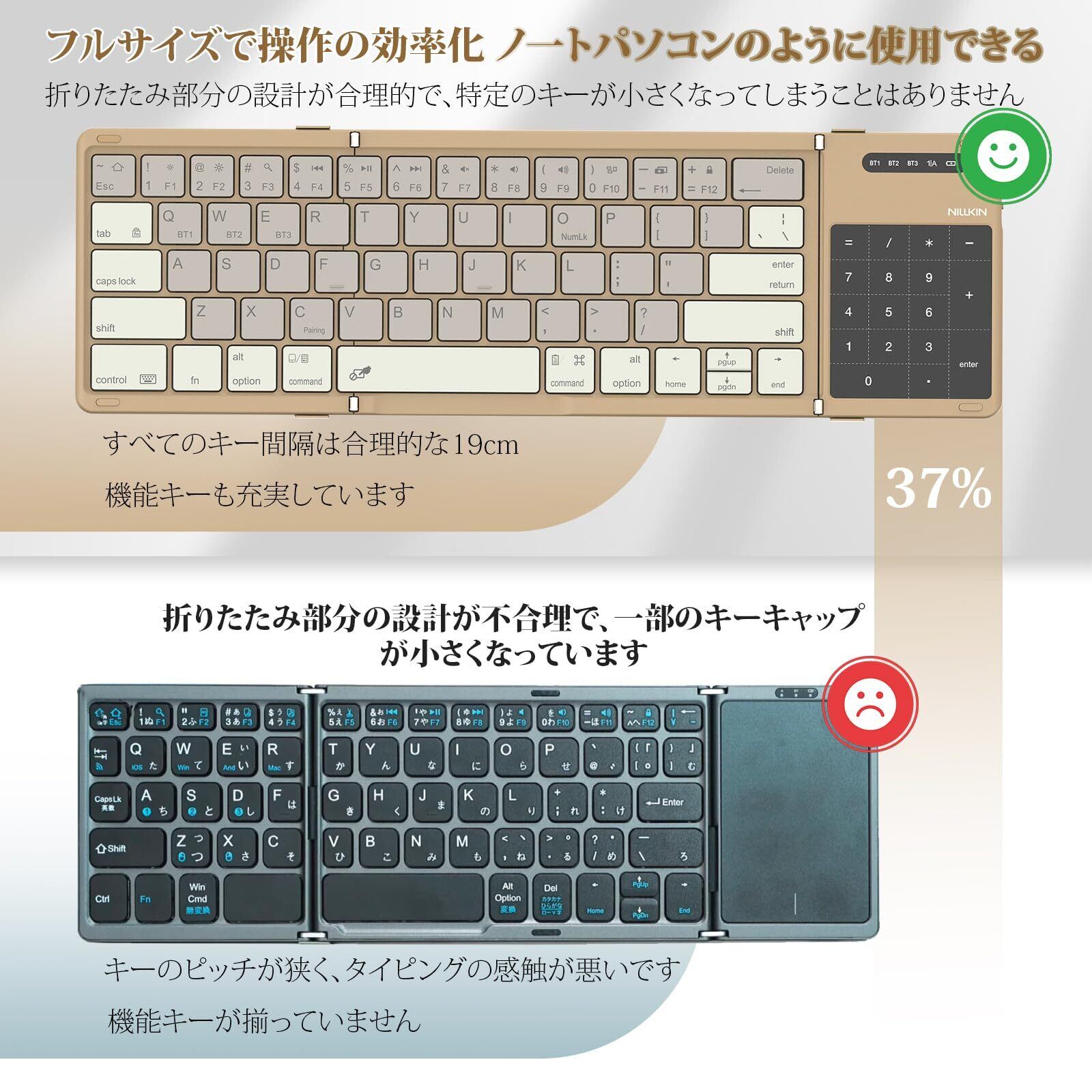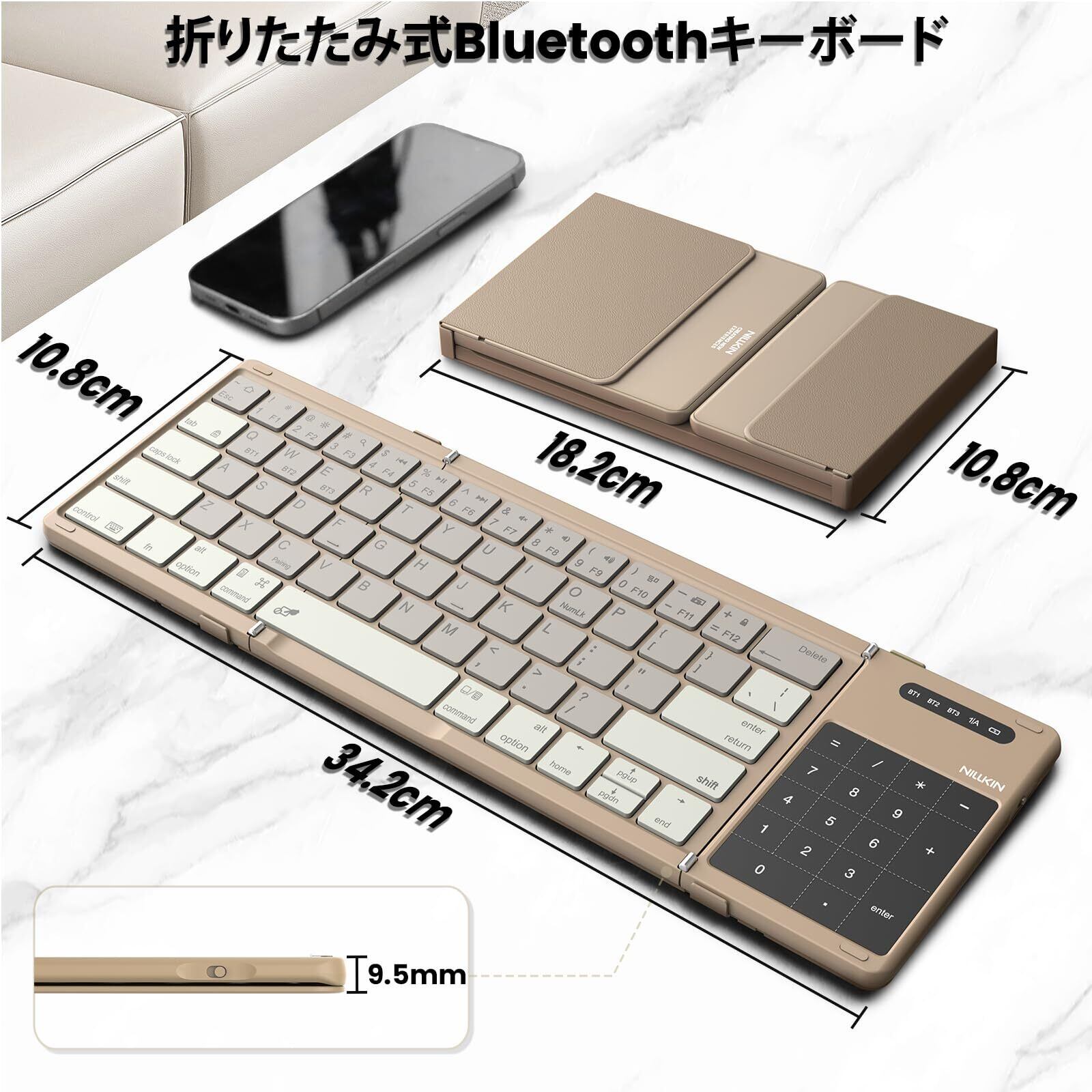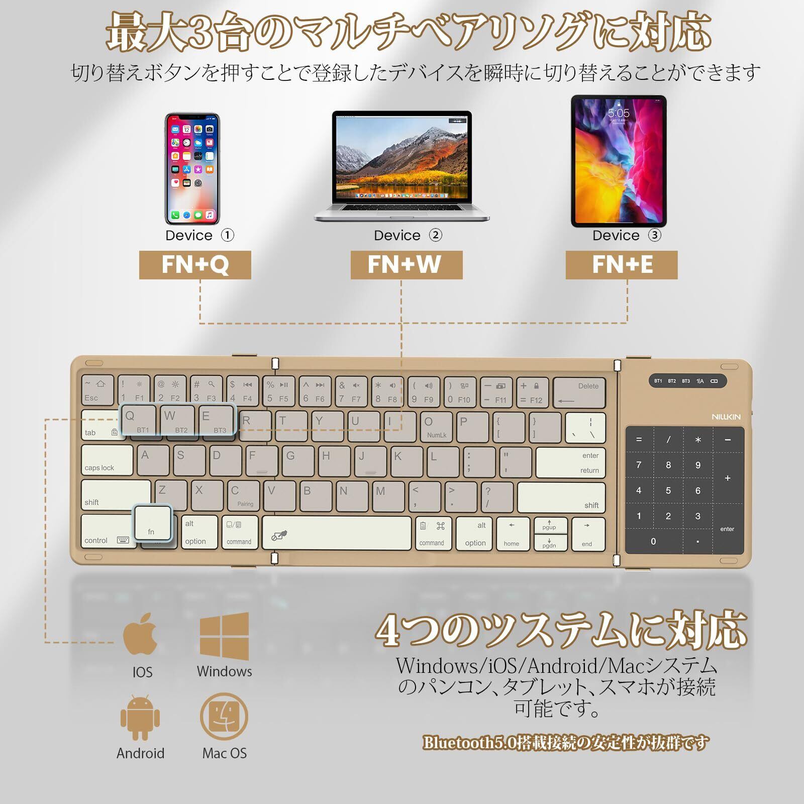 【2026年最新型】Nillkin 【公式直営店】 キーボード Bluetooth 折りたたみ式 ワイヤレス ipad キーボード ipad mini 薄型 軽量 3台同時接続 テンキー &タッチパッド搭載 Type-C充電式 トラックパッド マルチペアリング iOS/Android/Mac/Windows対応 パンタグラフ 収納バッグ付き 日本語説明書付 カーキ | kki