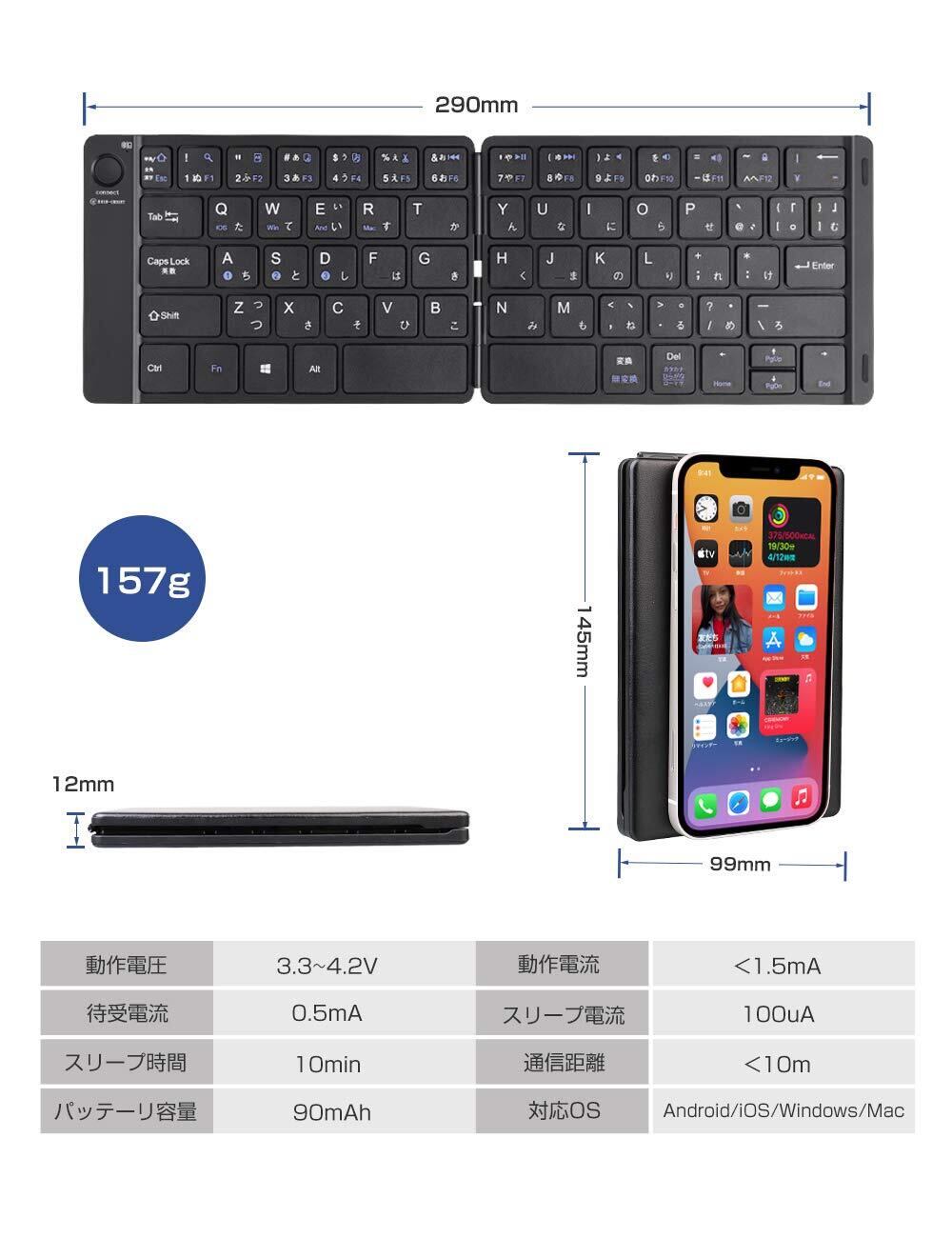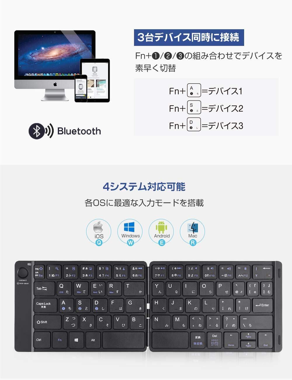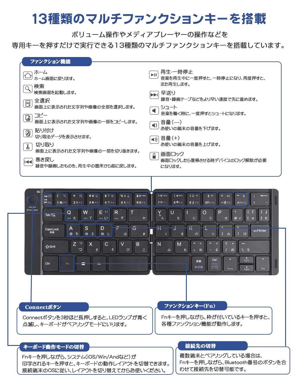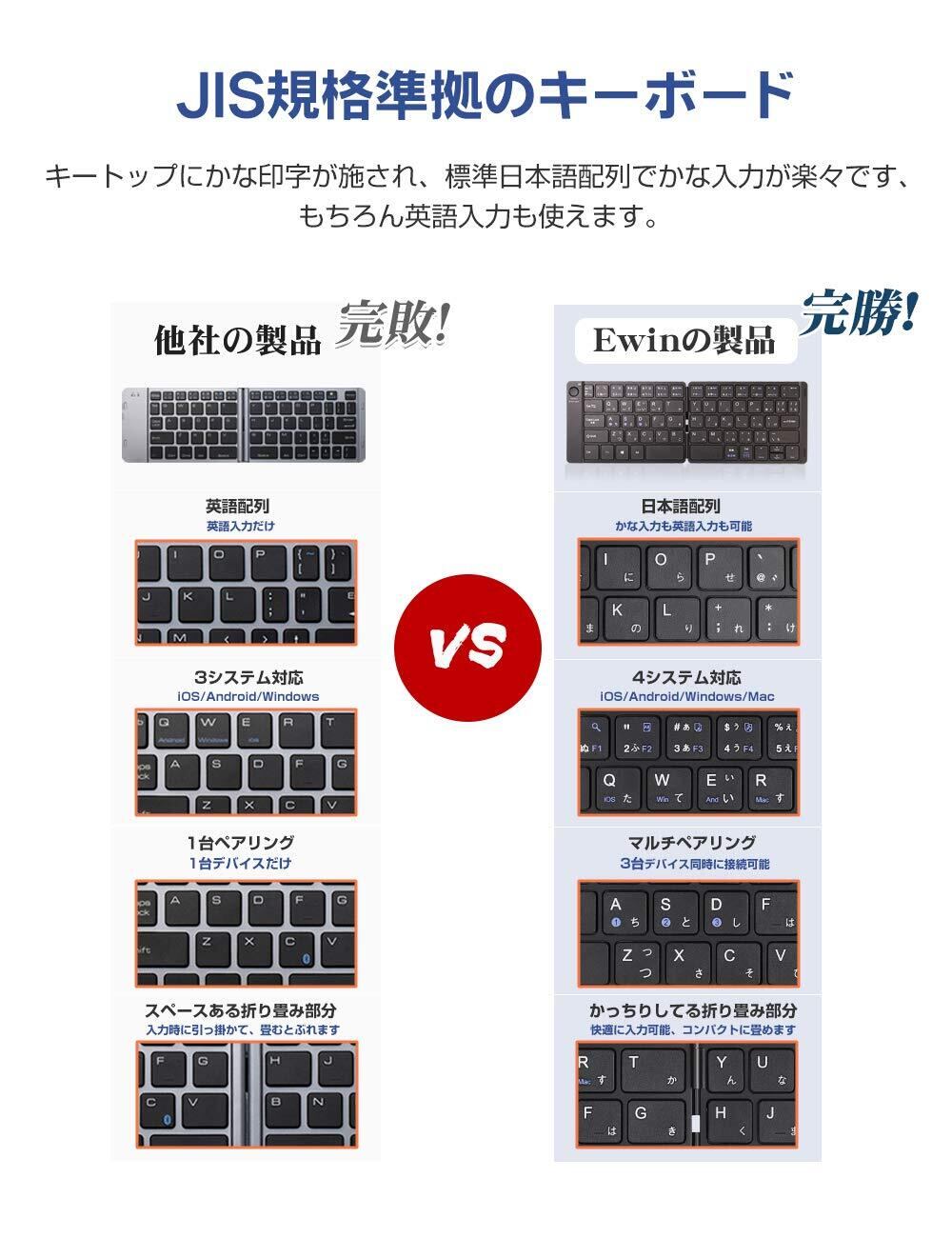 Ewin キーボード Bluetooth 日本語配列 折りたたみ式 ワイヤレス ブルートゥース キーボード 薄型 無線 type-c充電式 iOS/Android/Windows/Macに対応 パソコン用 スタンド付 ノートPC/iPad/iPhoneに対応 Android12非対応 | kki