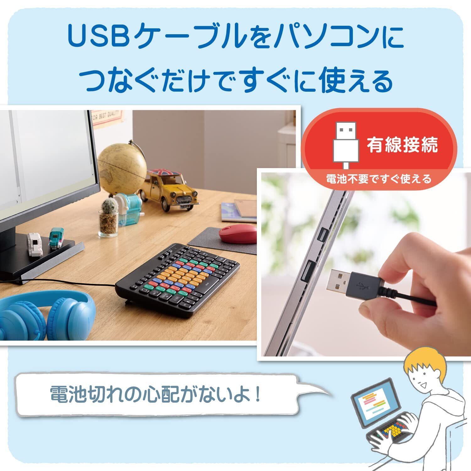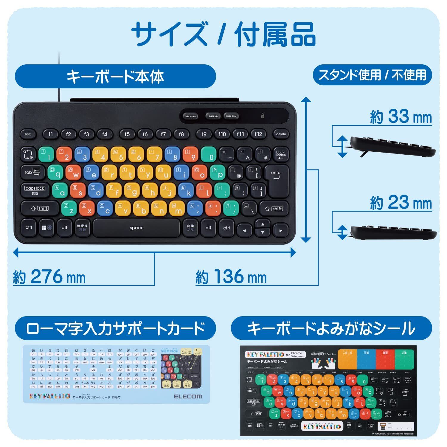 エレコム 有線キーボード 子供用 パソコン学習 プログラミング KEY PALETTO キーパレット 大阪電気通信大学 兼宗進副学長監修 抗菌 よみがなシール付 ブラック TK-FS10UMKBK | kki