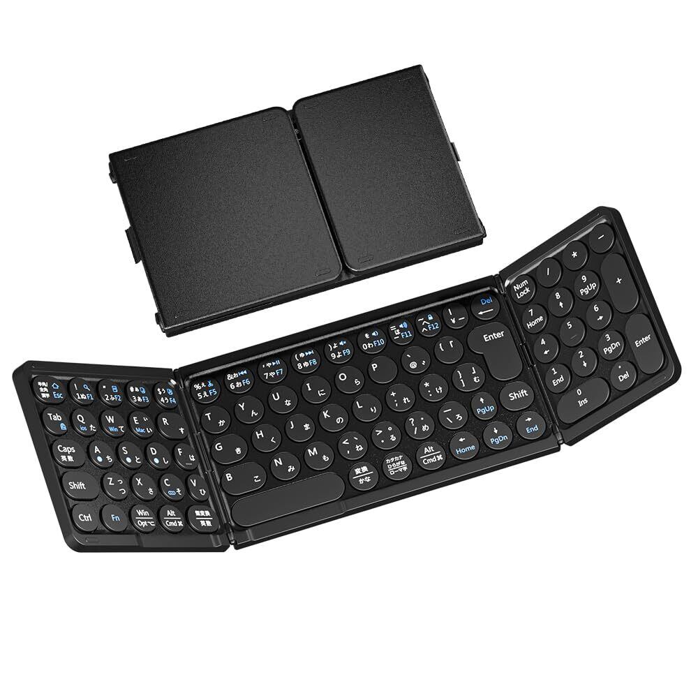 Omikamo キーボード Bluetooth 折り畳み式 ワイヤレス JIS標準日本語配列 丸型 可愛い テンキー付き フルサイズ 小型 左右Shiftキー/L型Enterキー搭載 ipad iOS/Windows/Mac対応 3台デバイス対応 パンタグラフ コンパクト Type-C充電式 スマホ用キーボード タブレット パソコン 静音 軽量 日本語説明書付(黒) | kki