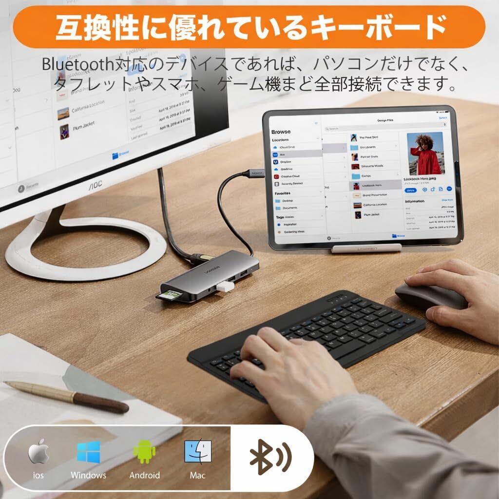 Bluetooth ワイヤレスキーボード 英語配列 薄型・軽量・静音 充電式 小型 無線 iPad iPhone Android Windows Mac タブレット PC 多機種対応 持ち運び便利 在宅勤務・学習用 日本語説明書付き | kki