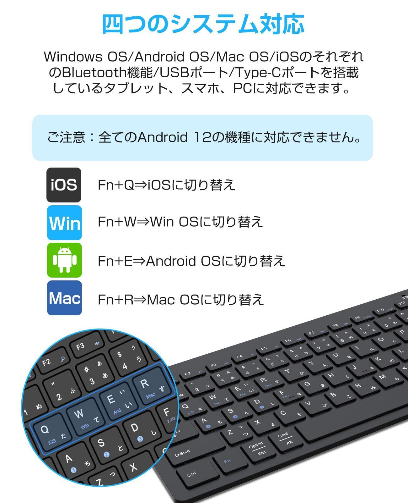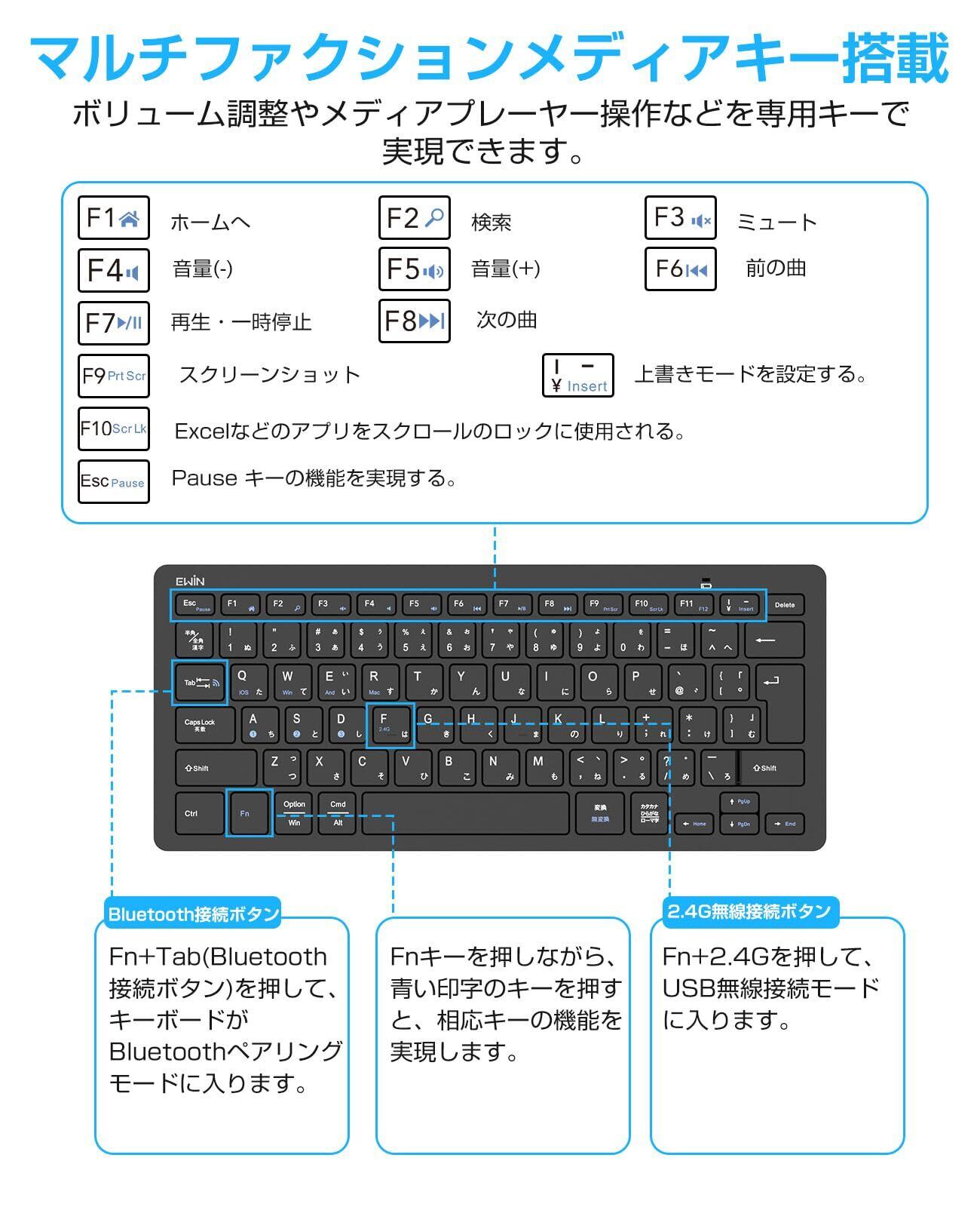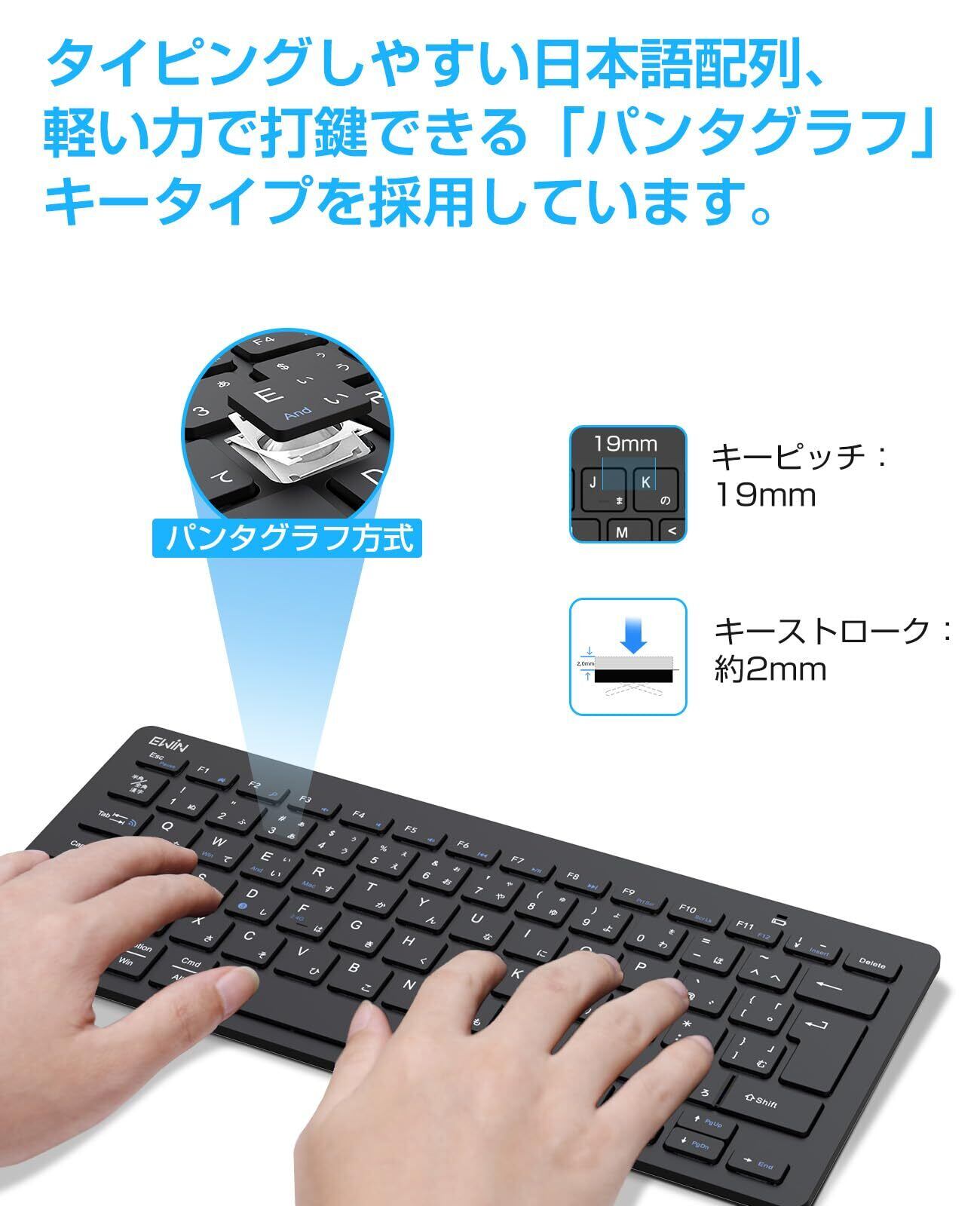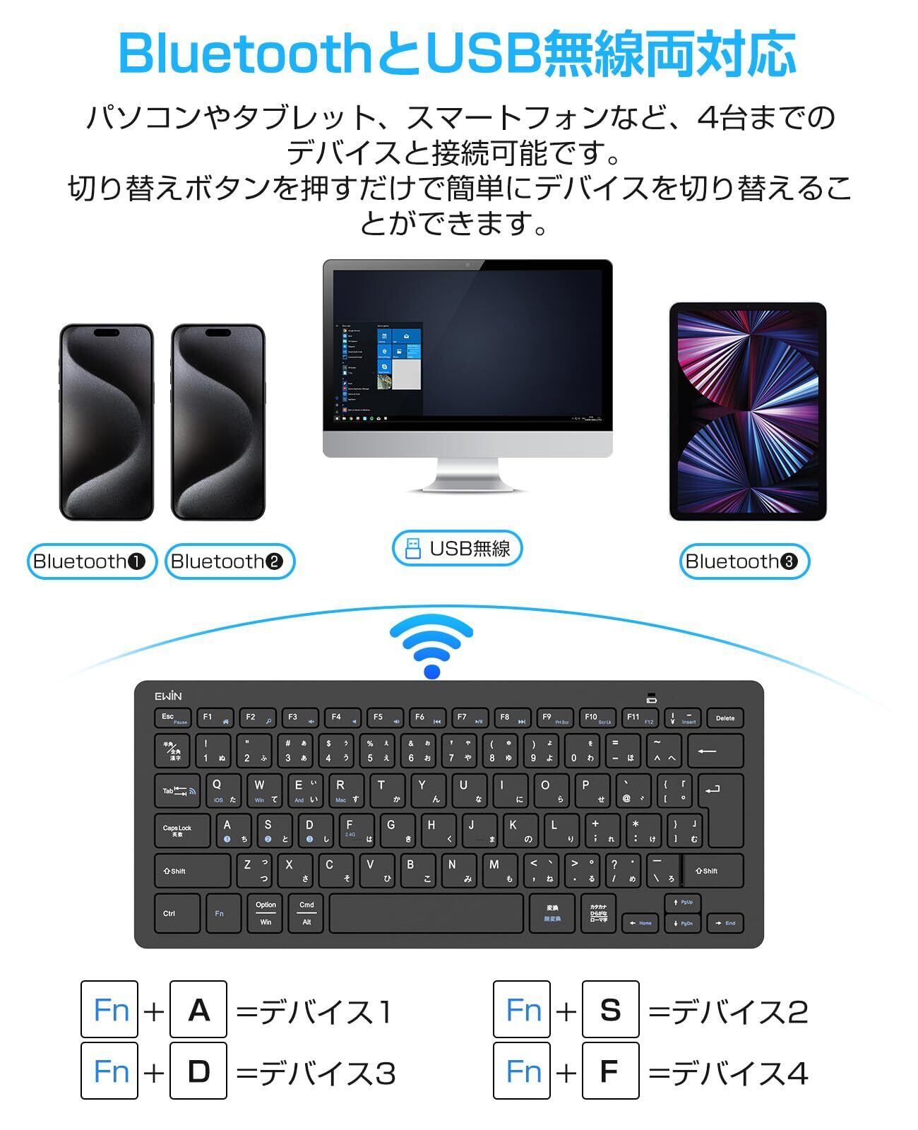 EWiN キーボード ワイヤレス bluetoothとusb無線両対応 JIS日本語配列 小型 Windows mac ios android対応 ipad iphone タブレット パソコン スマホ 4台デバイス自由に切替え keyboard ブルートゥース パンタグラフ テンキーレス 薄型 軽量 スタンド付き 2.4GHz レシーバー付属 Type-C変換アダプタ付き ブラック | kki