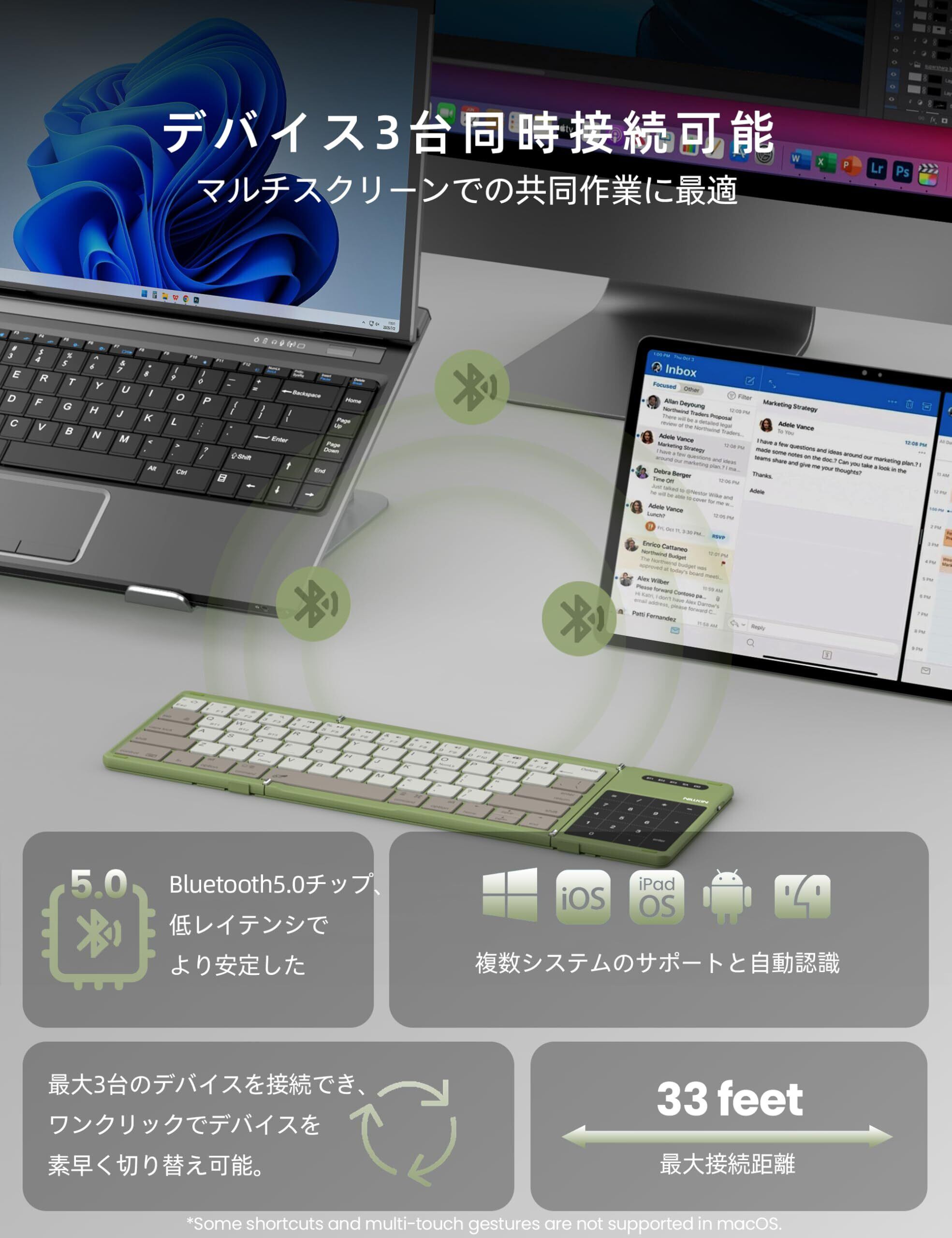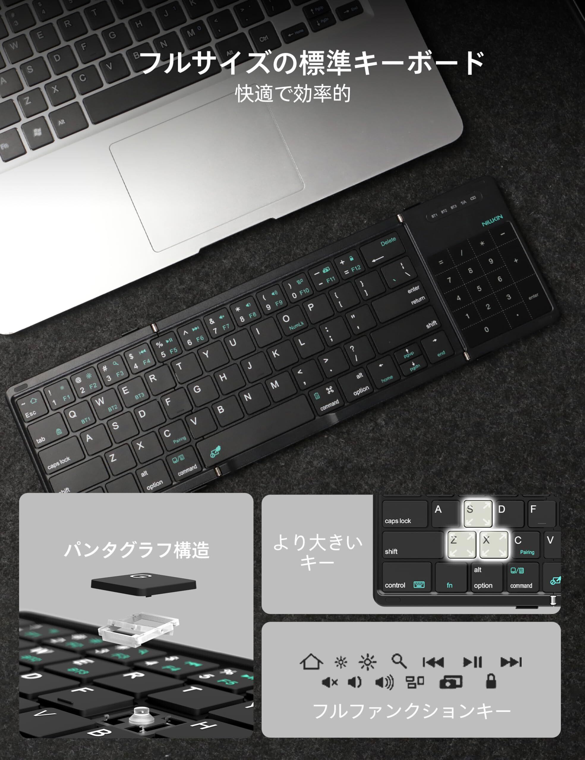 Nillkin 【正規販売店】 キーボード Bluetooth 折りたたみ式 ワイヤレス iPad用 無線 【タッチパッド&テンキー2 in 1】 三台同時接続 iOS/Android/Mac/Windows対応 Type-C充電式 アンドロイド スマホ用 ipad mini 小型 コンパクト 静音性 軽量薄型 ミニキーボード 持ち運び 省スペース旅行・出張最適 日本語説明書付き(ブラック) | kki
