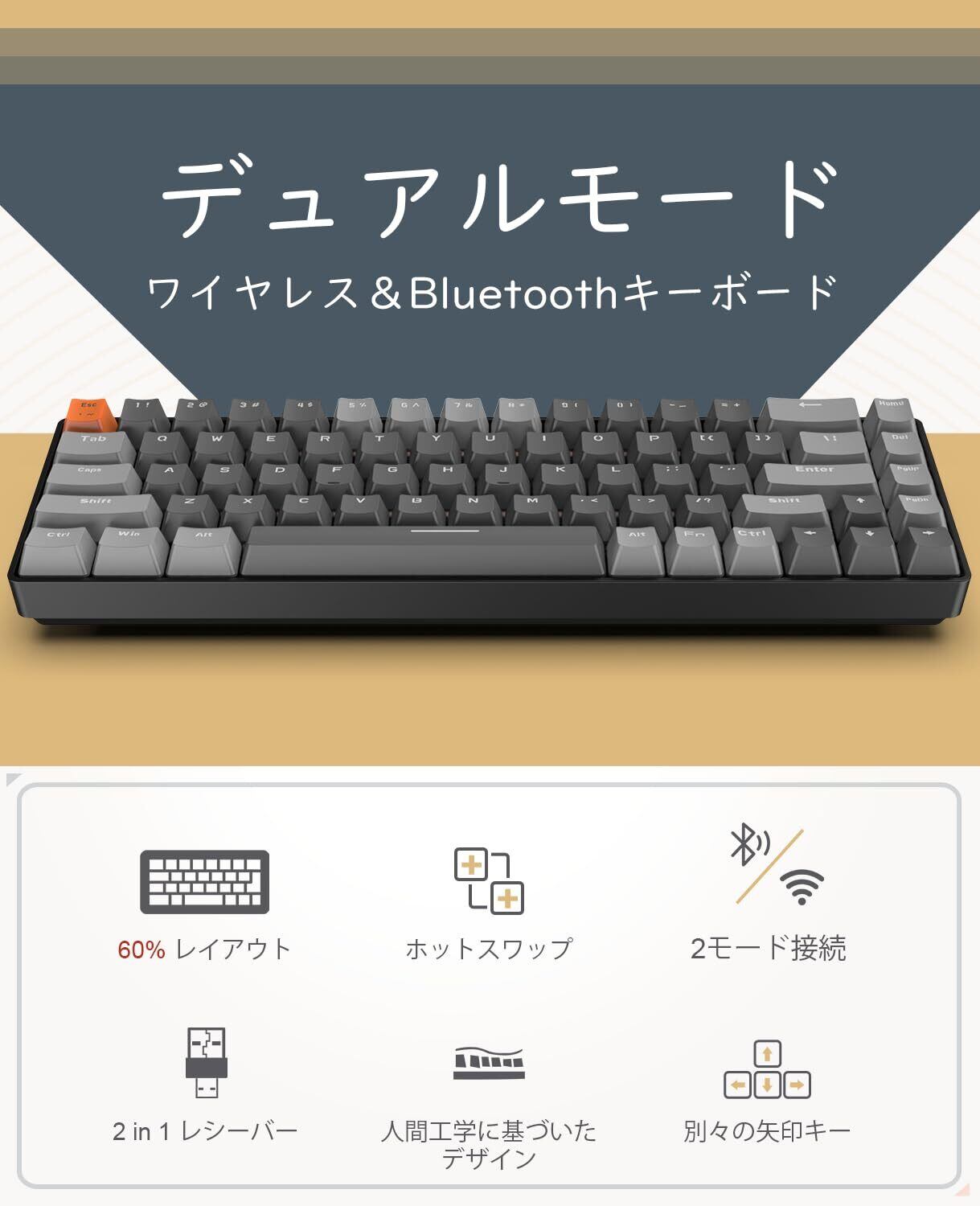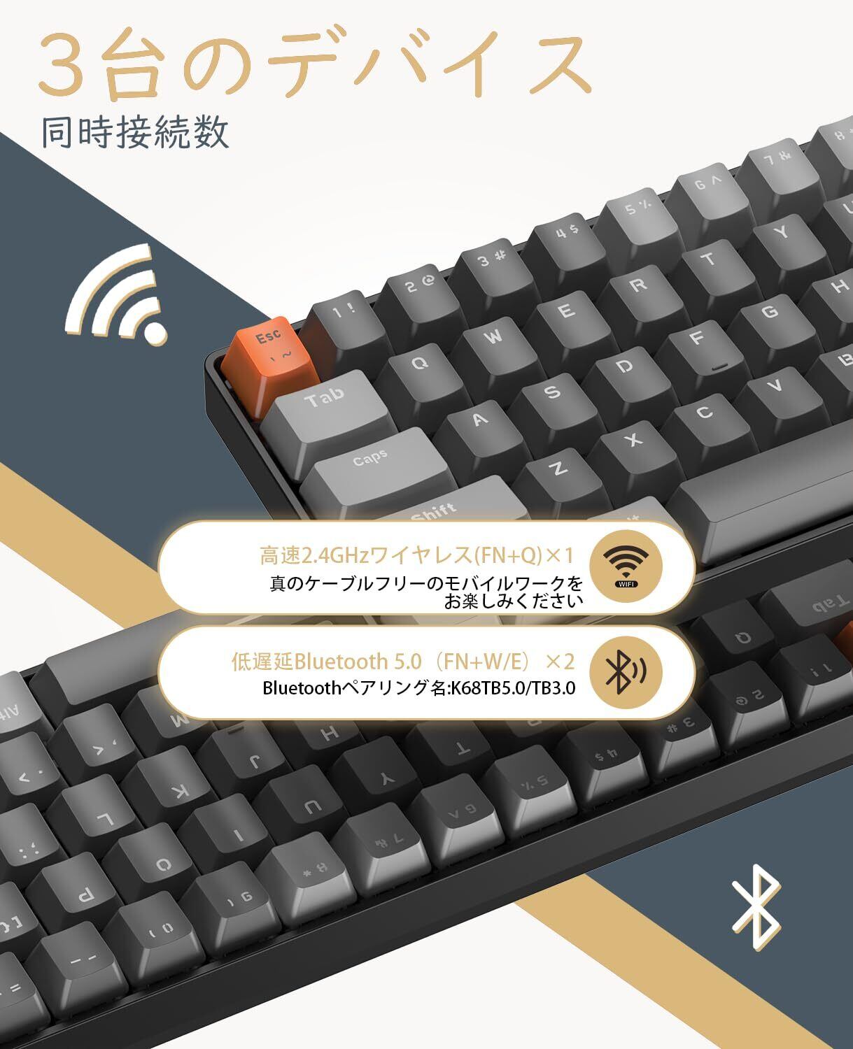 MAGIC-REFINER x ZIYOU LANG Bluetoothワイヤレス ゲーミングキーボード 無線 小型 青軸K68キーボード2.4GHZ USB接続 テンキーレス Windows Mac iPad iOS Android Surface 対応 在宅勤務 日本語説明書 技術基準適合証明番号:219-239327 (ビジネスグレー 青軸) | kki