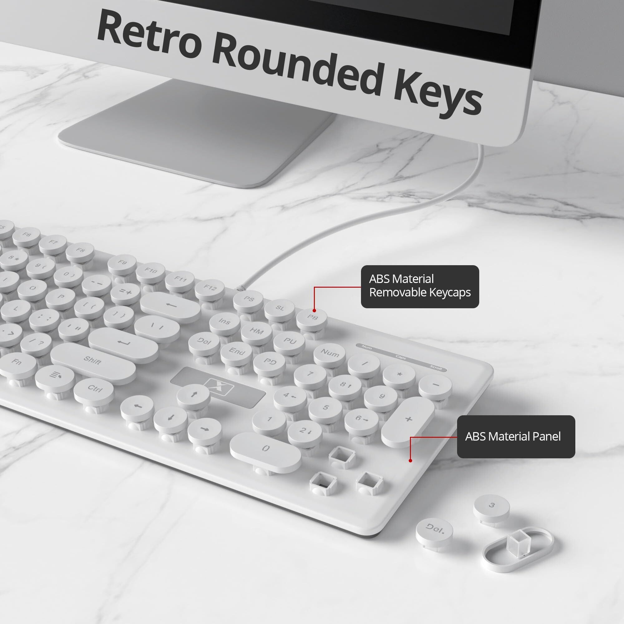 有線静音メンブレンキーボード、フルサイズ 104 キーレトロパンクタイプライターホワイト LED バックライト付き、USB ウルトラスリムゲーミングキーボード ABS ラウンドキーキャップ付き Windows/PC/ラップトップ用(V300WHITE) | kki
