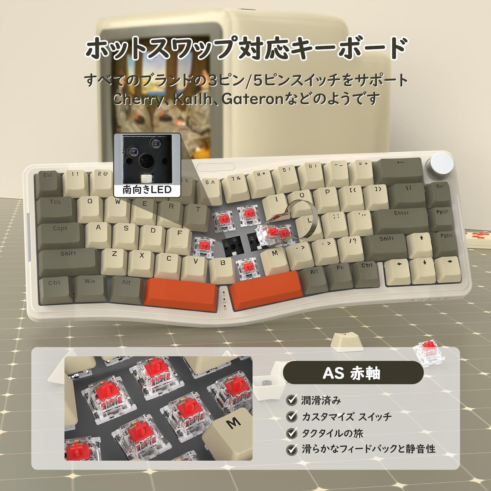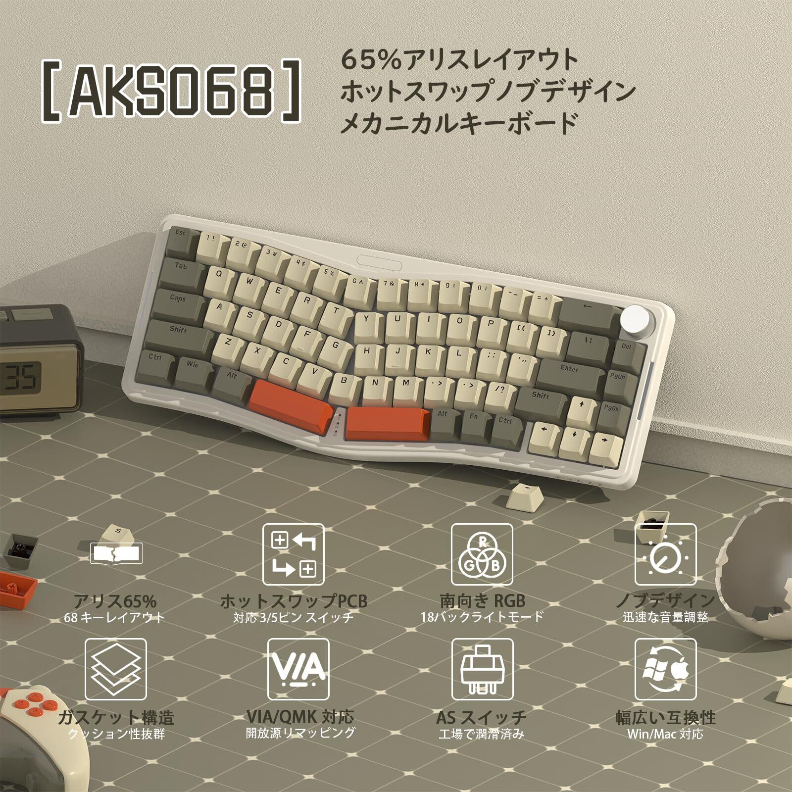 AKS068 ゲーミングキーボード アリスレイアウト 68キーアンチゴーストキー Gasket構造 ホットスワップ可能 人間工学 南向きのRGBバックライト 両側RGBライトPBTキーキャップ Type-C有線 Windows Vista/XP/7/8/10/11、Mac対応 (gray) | kki