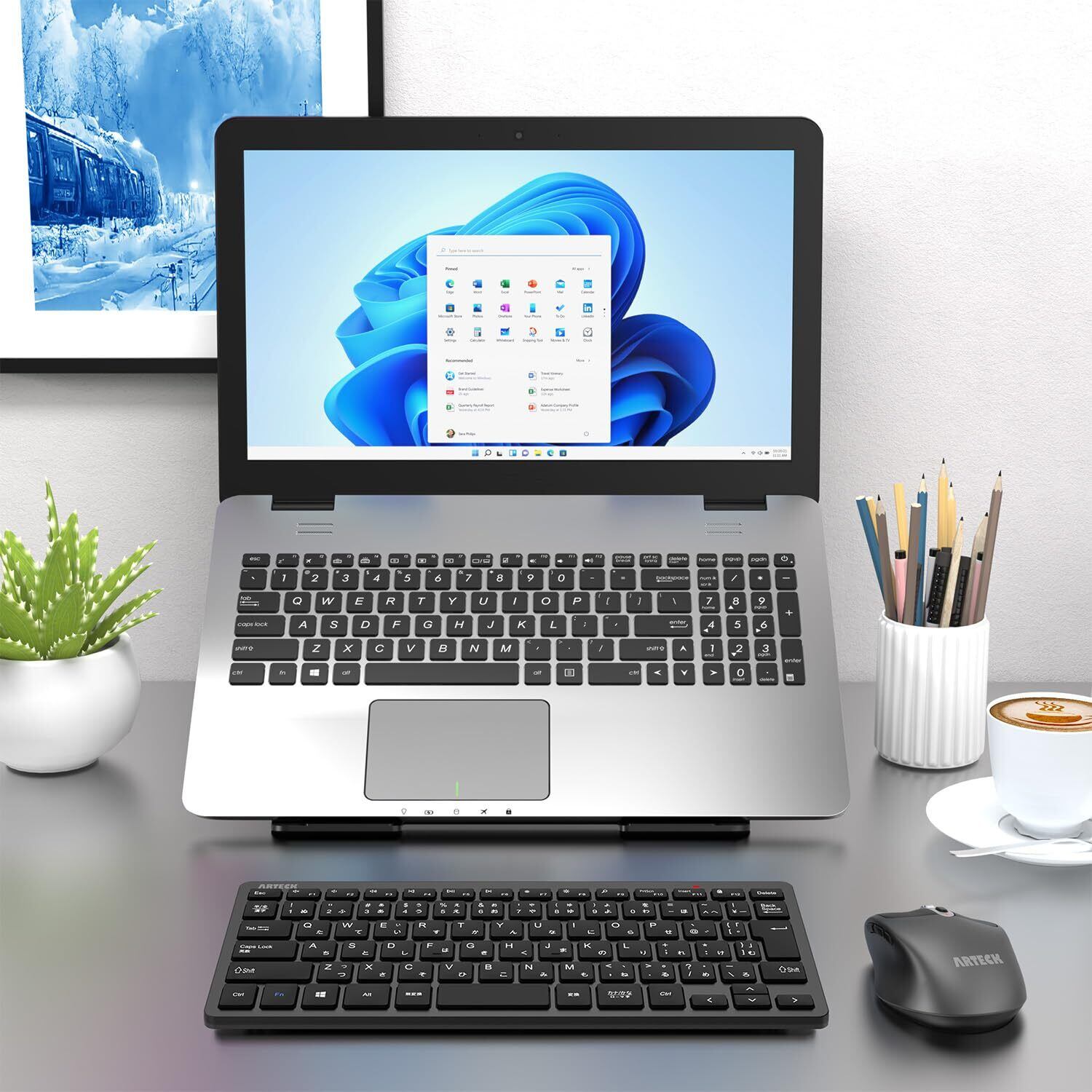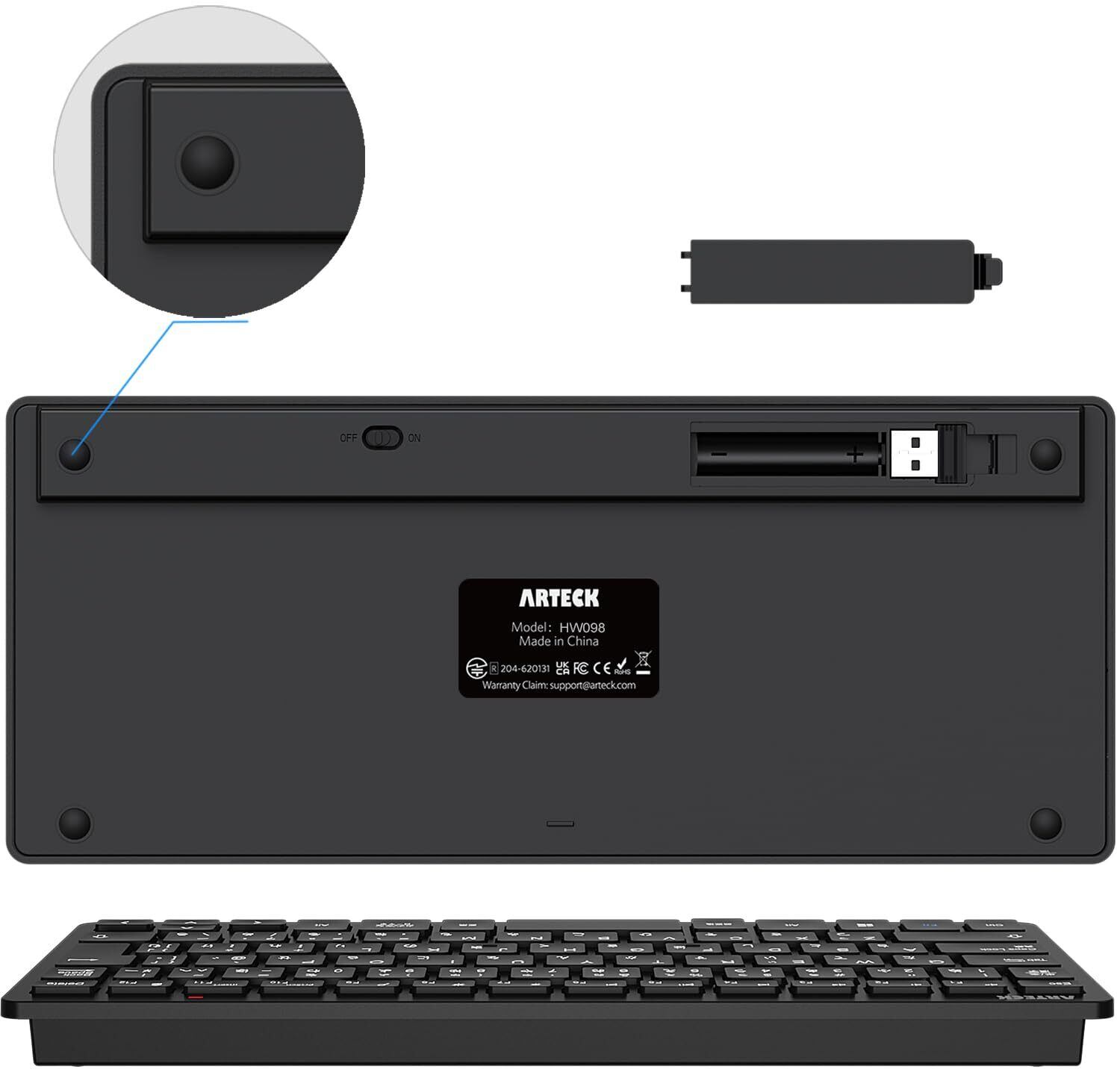 Arteck 2.4Gワイヤレスキーボード 無線 軽量 コンパクトメディア機能 ホットキー ショートカット コンピューター、デスクトップ、PC、ラップトップ、Surface、スマートテレビ、Windows11/10/8/7との交換性あり、黒 | kki