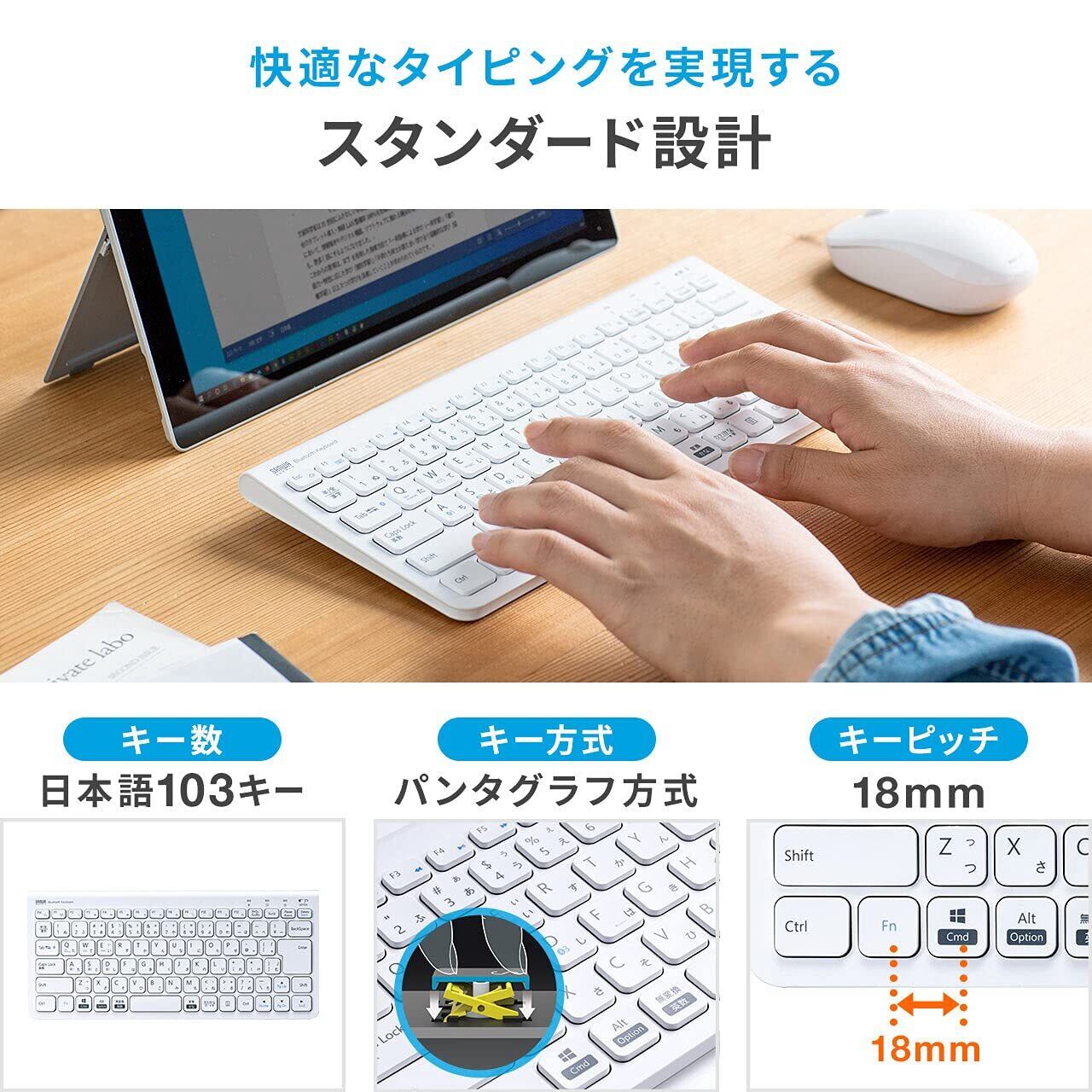サンワダイレクト Bluetoothキーボード マルチペアリング iPad iOS/Win/Mac/Android 対応 配列切替可能 充電式 パンタグラフ 日本語配列 テンキーレス ホワイト 400-SKB073 | kki