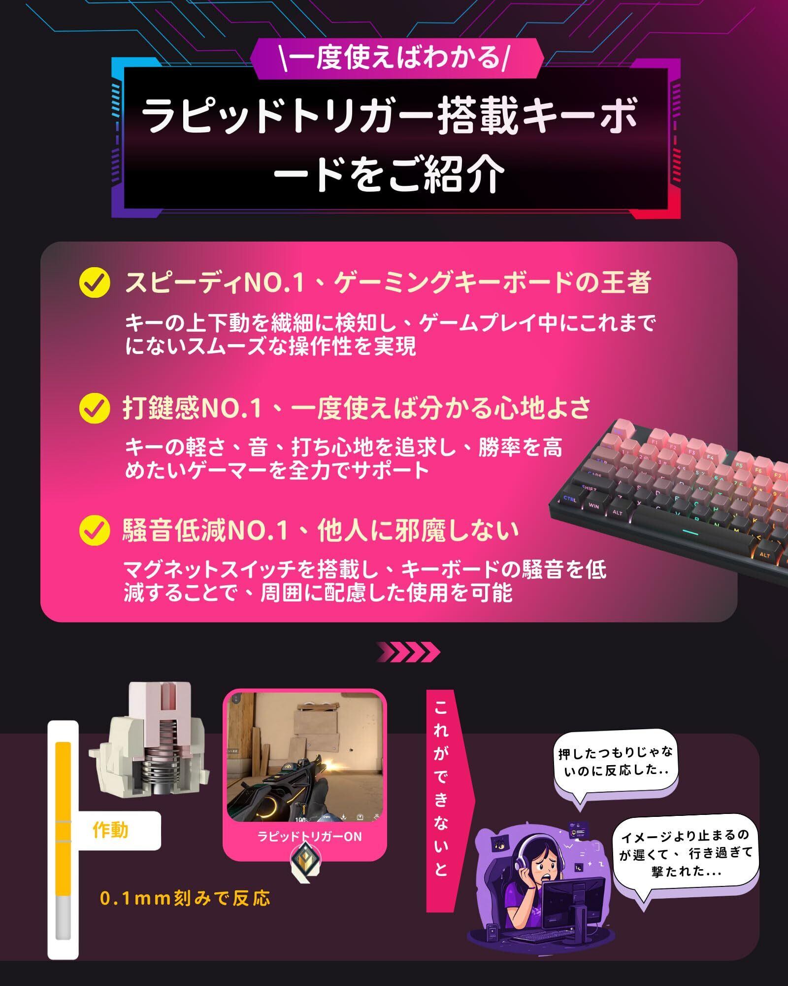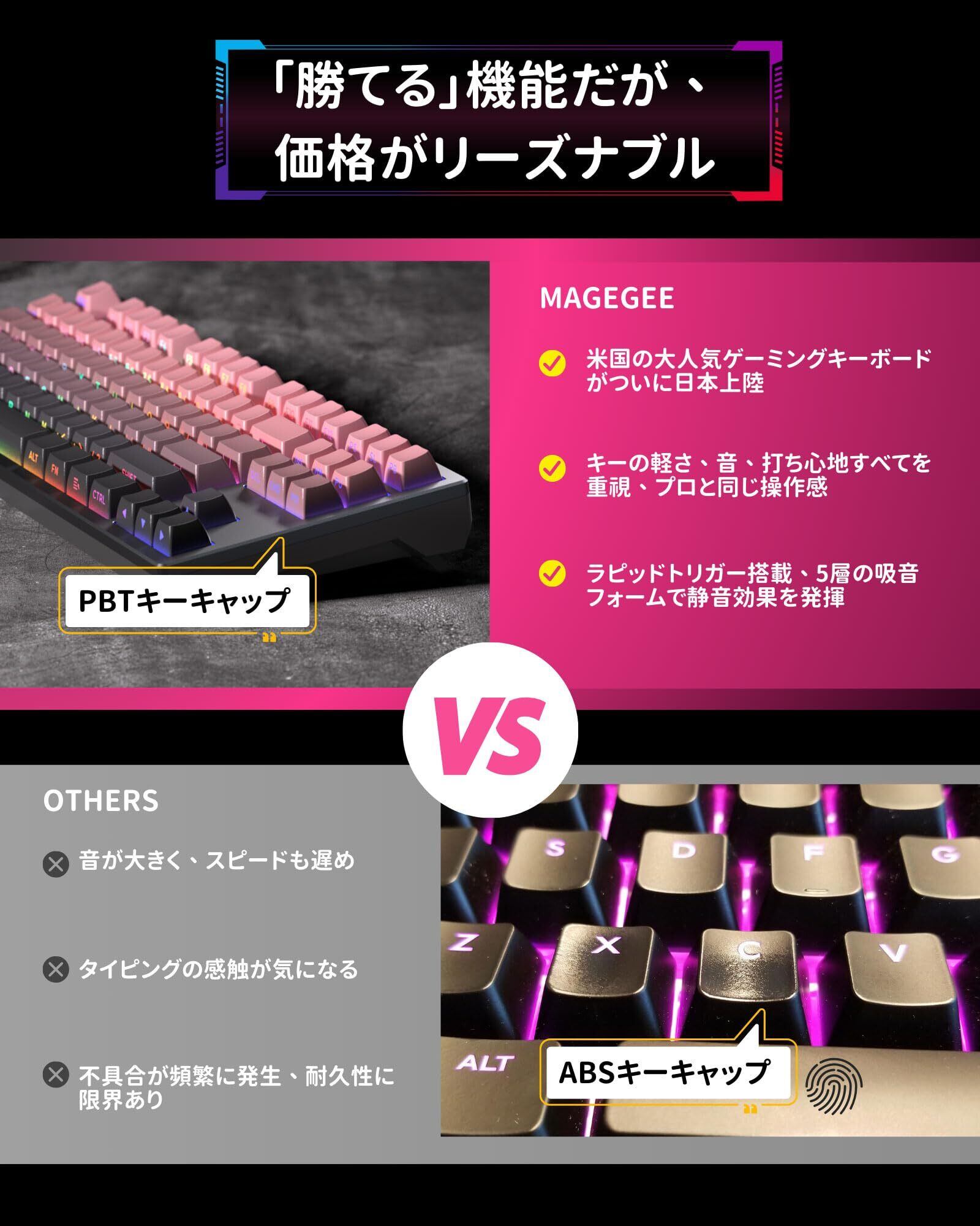 MageGee ラピッドトリガー キーボード | ゲーミングキーボード ラピッドトリガー | CNCアルミフレーム、RGB 有線 USB コンパクトゲーミング用 メカニカルキーボード