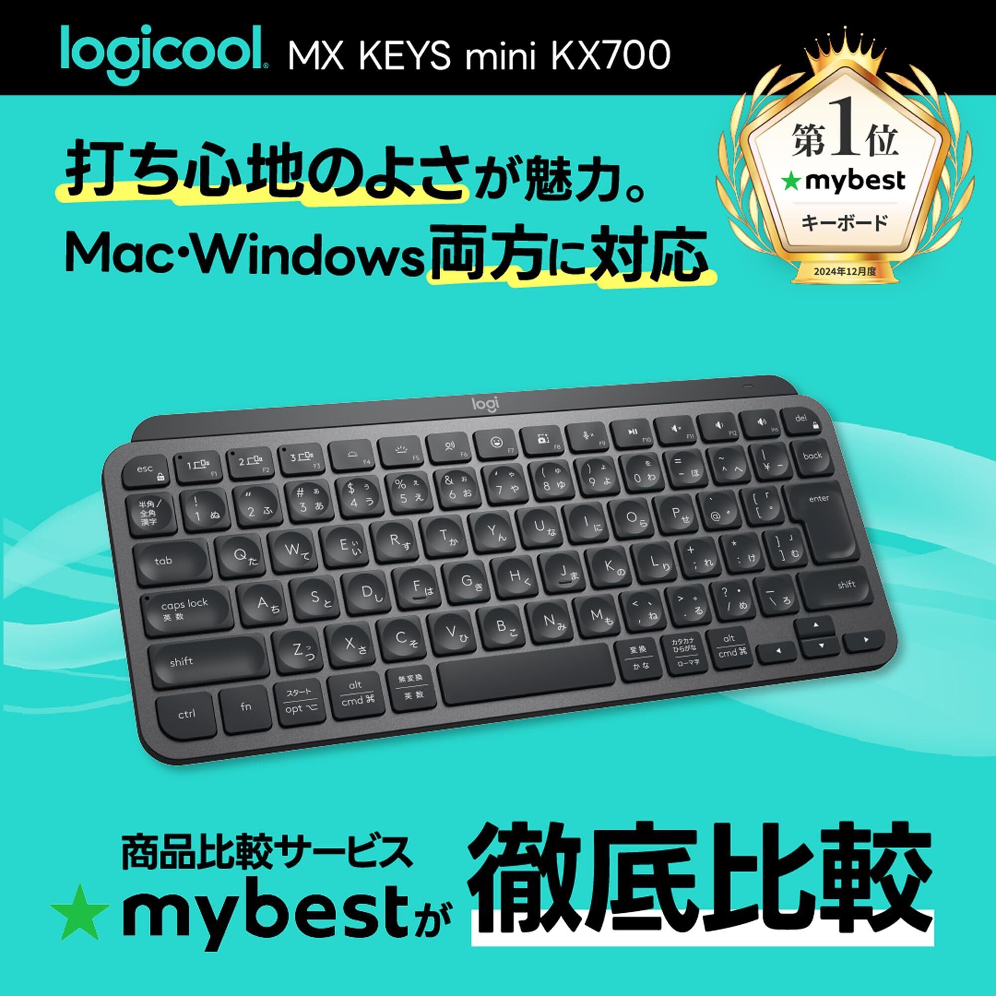 ロジクール MX KEYS mini KX700GRd ミニマリスト ワイヤレス イルミネイテッド キーボード グラファイト 充電式 Bluetooth Logi Bolt Unifying非対応 USB-C-A 日本語配列 無線 KX700 国内正規品 | kki