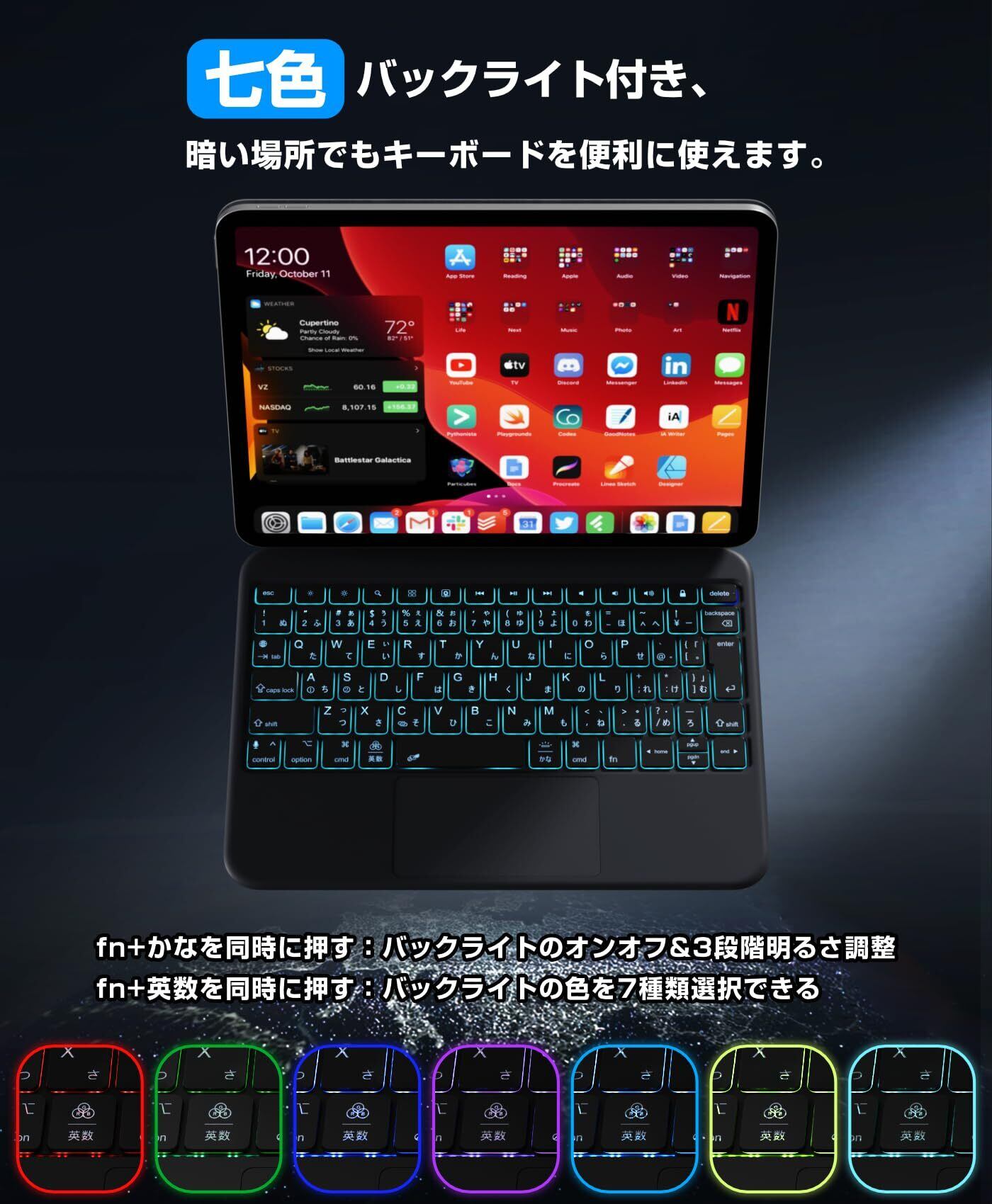 マジックキーボード付きケース iPad A16 11世代/10世代対応 【業界革新版】 Ewin 標準JIS日本語配列 逆L型enterキーと左右shift/cmdキー magic keyboard 磁気吸着 高精度タッチパッド付き 7色バックライト搭載 bluetooth 5.3 ワイヤレス ブルートゥース 2台iOSデバイス接続可能 ブラック | kki