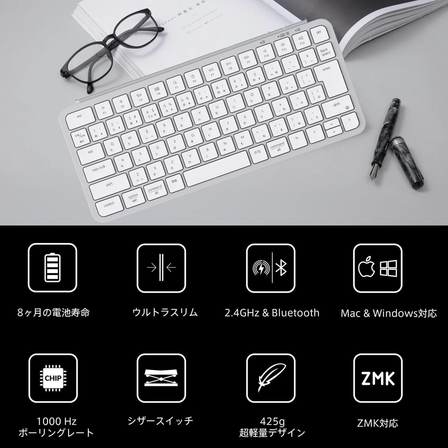 【国内正規品】Keychron B1 Pro ウルトラスリム ワイヤレスキーボード、ZMKカスタマイズ、シザースイッチ、2.4 GHz/Bluetooth 5.2/有線接続、ロングバッテリーライフ、Mac Windows Linux対応 (シルバー, JISレイアウト) | kki