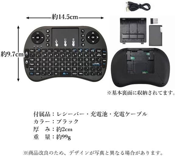 ワイヤレスキーボード ミニ 2.4GHz ポータブルキーボード タッチパッドマウス付き 電池式 PC Android TV Windows対応 ノートパソコン デスクトップなど 無線 コンパクト ブラック | kki