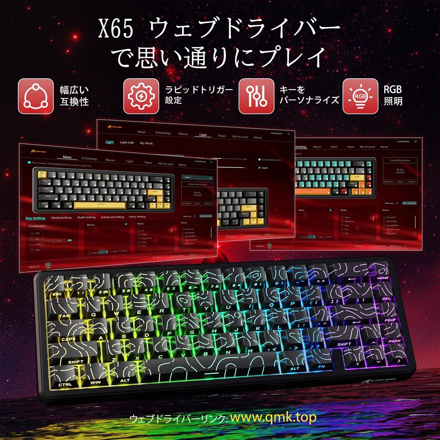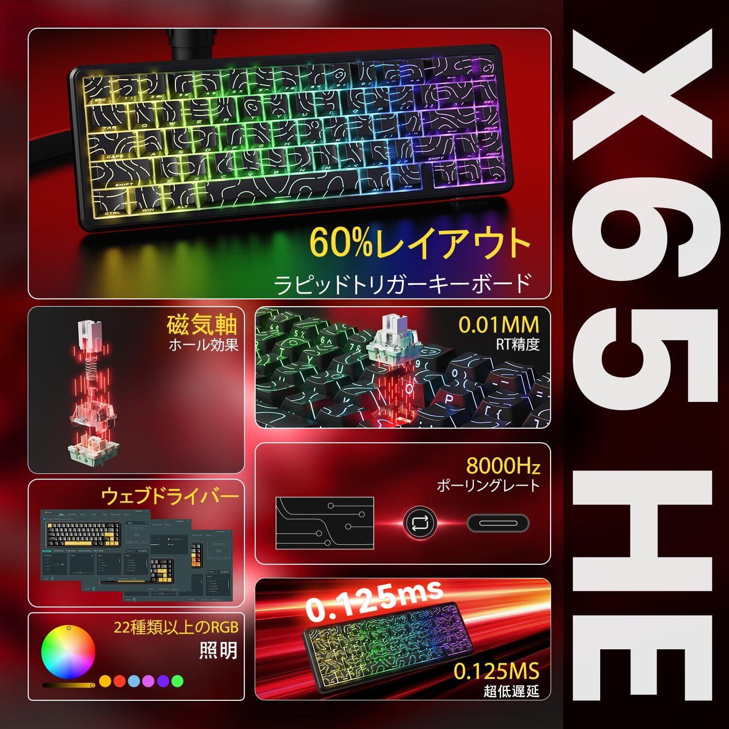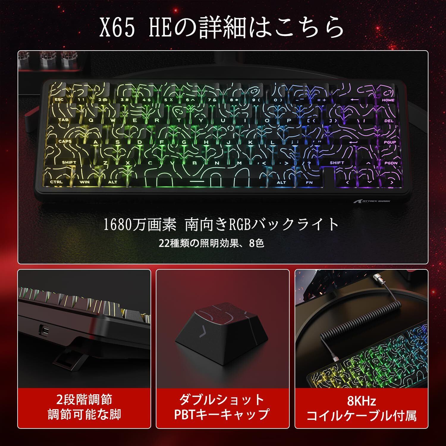 ATTACK SHARK X65 HEラピッドトリガーキーボード、磁気軸、65% 有線ゲーミング キーボード、0.01mm RT精度、0.125msレイテンシー、8Kポーリングレート、0デッドゾーン、snap tap、128Kスキャンレート、QMK ウェブドライバ、RGBバックライト、4-in-1キー機能、トップ構造、カスタム可能トリガーポイント、8Kケーブル(等高線-ブラック) | kki