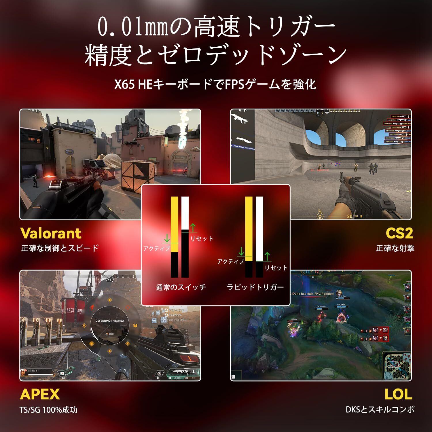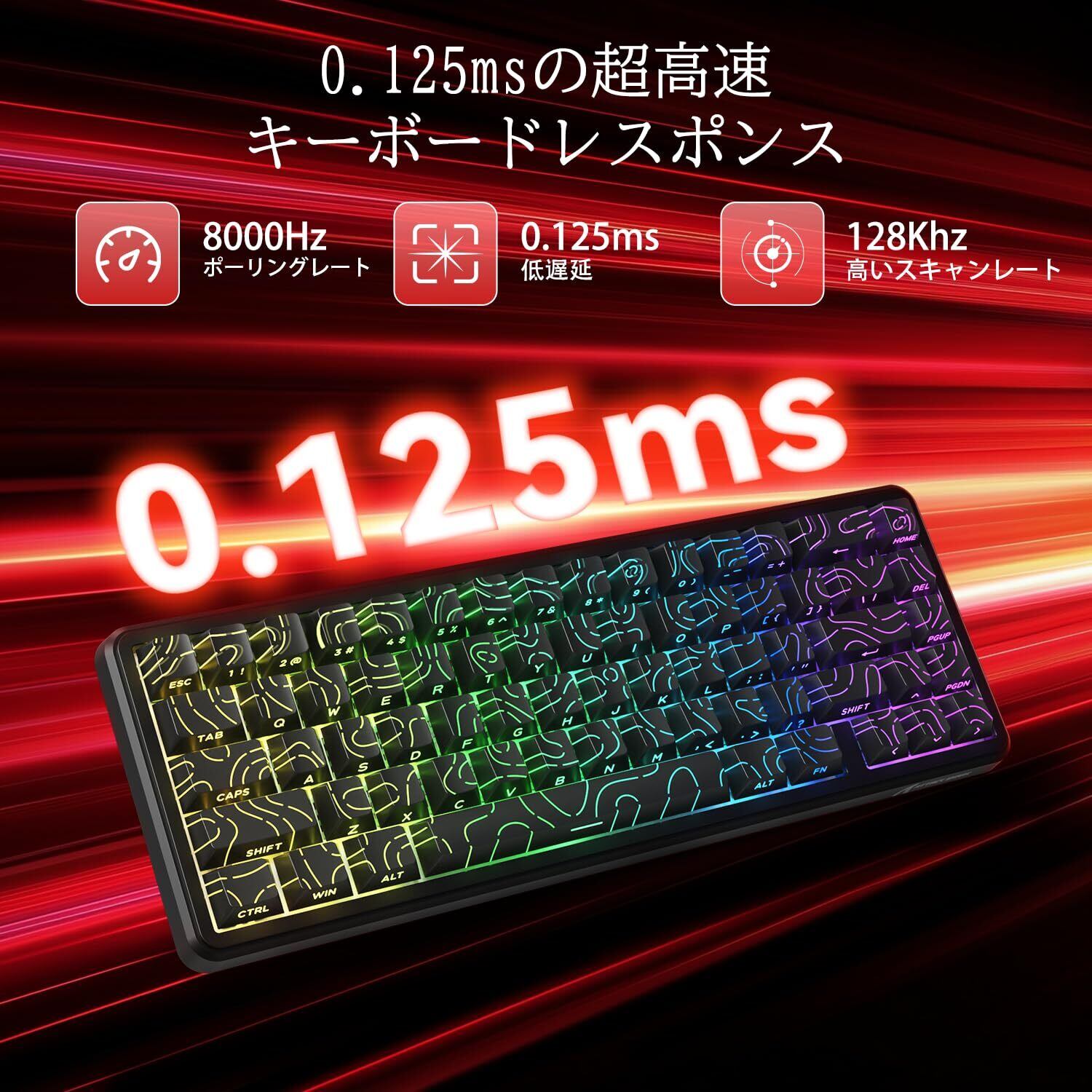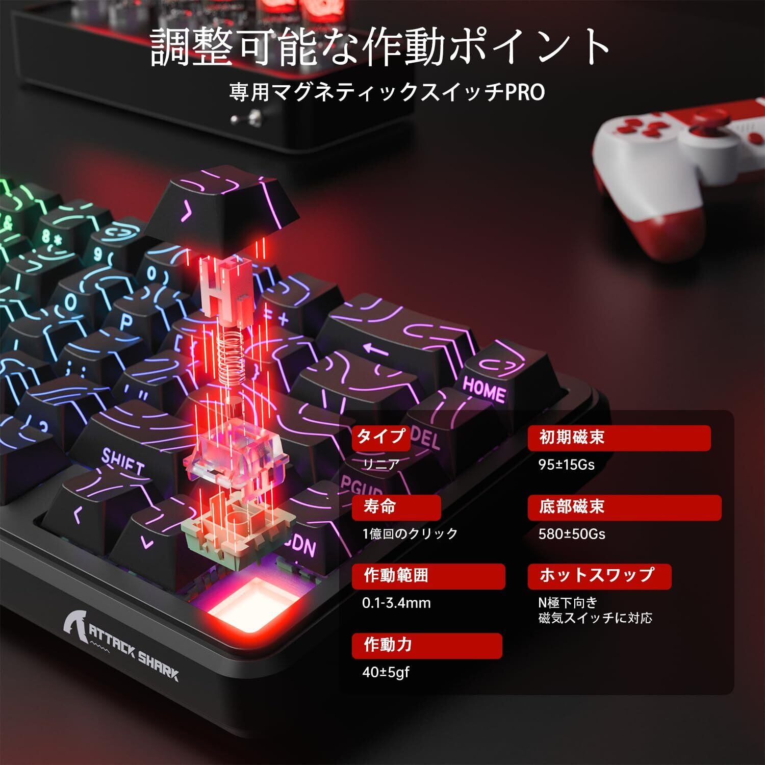 ATTACK SHARK X65 HEラピッドトリガーキーボード、磁気軸、65% 有線ゲーミング キーボード、0.01mm RT精度、0.125msレイテンシー、8Kポーリングレート、0デッドゾーン、snap tap、128Kスキャンレート、QMK ウェブドライバ、RGBバックライト、4-in-1キー機能、トップ構造、カスタム可能トリガーポイント、8Kケーブル(等高線-ブラック) | kki